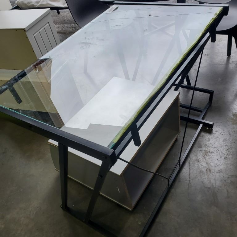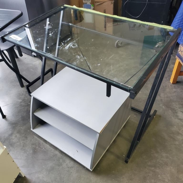 GLASS TOP DESK AND 2 TIER PRINTER STAND