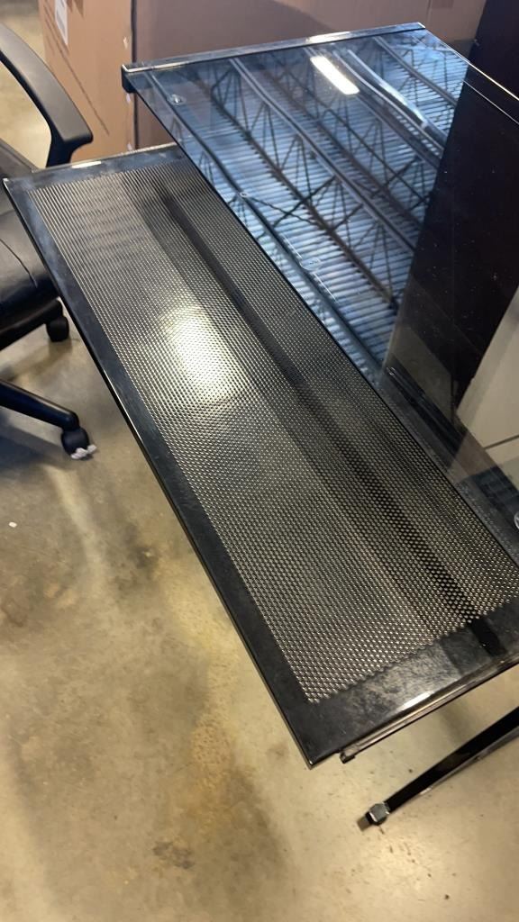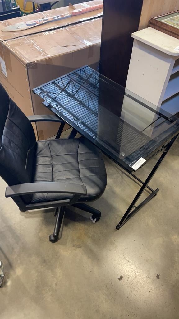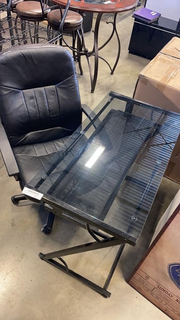GLASS TOP DESK WITH SLIDING TRAY AND GAS LIFT OFFICE CHAIR