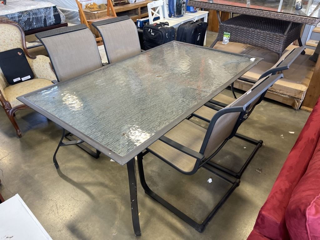 GLASS TOP PATIO TABLE AND 4 CHAIRS