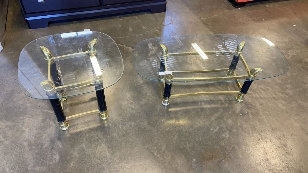 GLASSTOP COFFEE TABLE AND SIDE TABLE