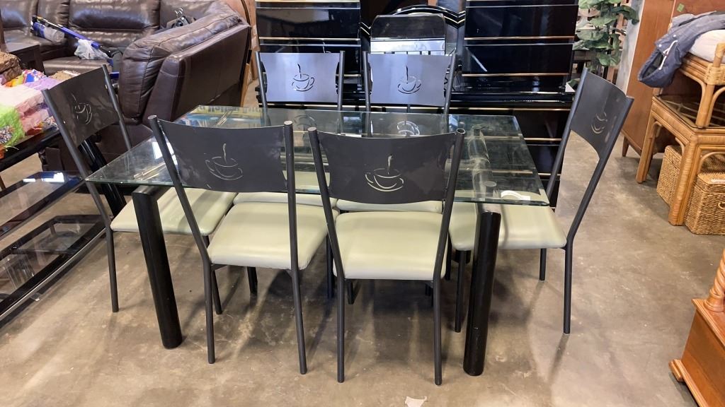 GLASSTOP DINING TABLE AND 6 CHAIRS