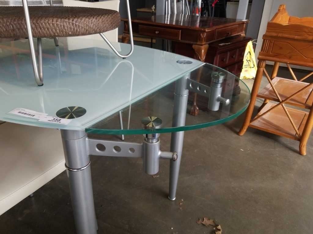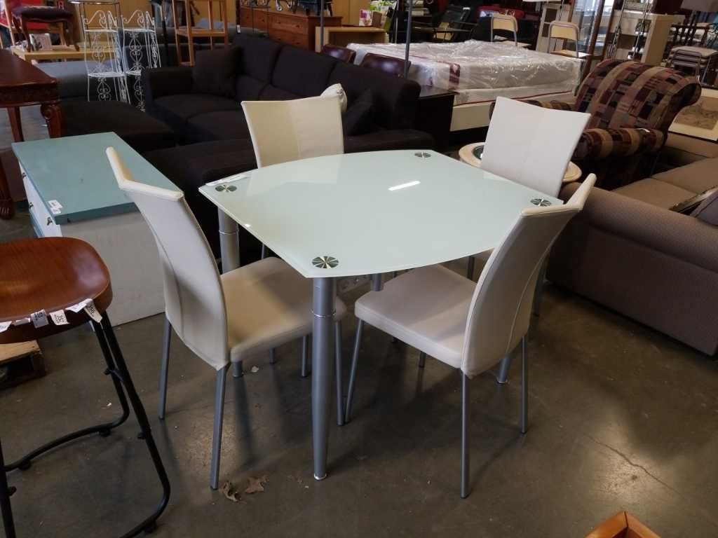 GLASSTOP DINING TABLE WITH SWIVEL OUT LEAFS AND 4 LEATHER CHAIRS RETAIL $1899