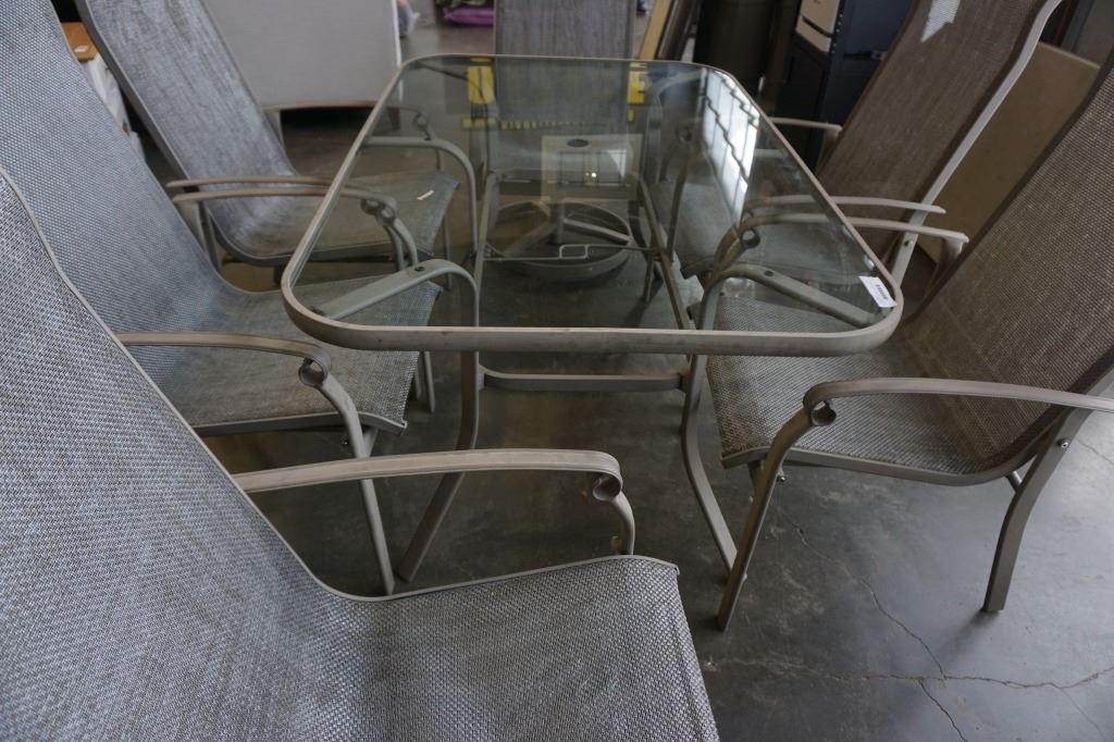 GLASSTOP PATIO TABLE WITH 6 CHAIRS - 2 ARE SWIVEL