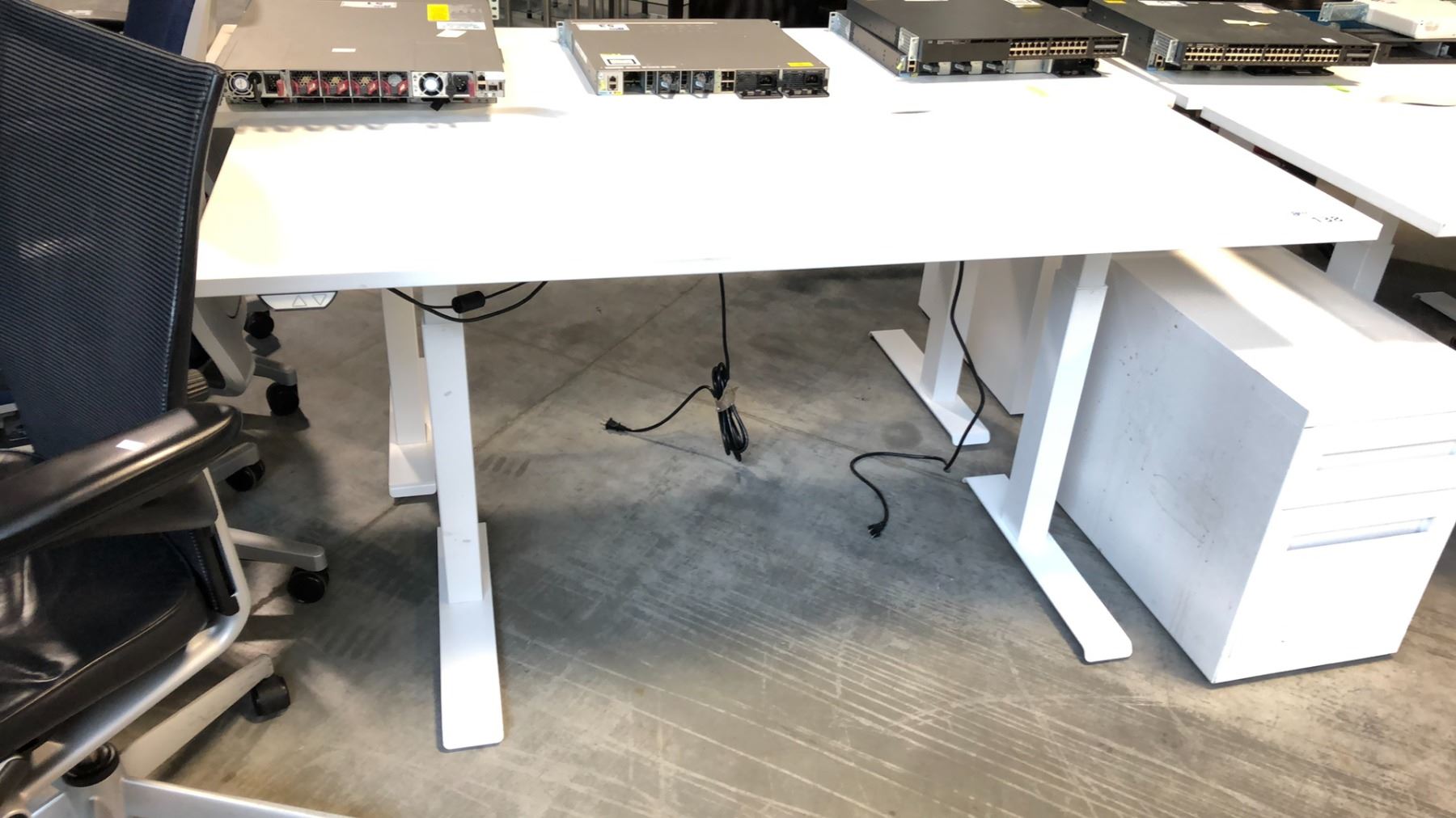GLOBAL BOULEVARD GREY 66  X 24  ELECTRIC SIT/STAND PROGRAMMERS TABLE