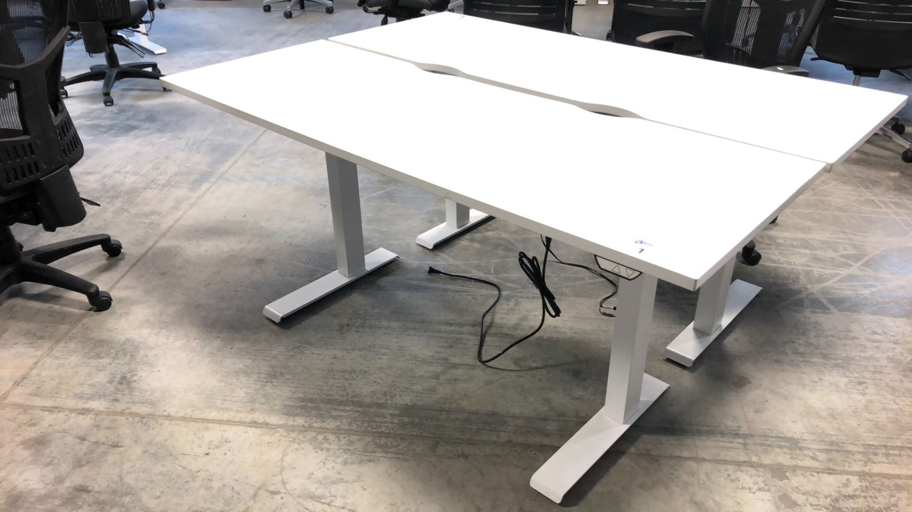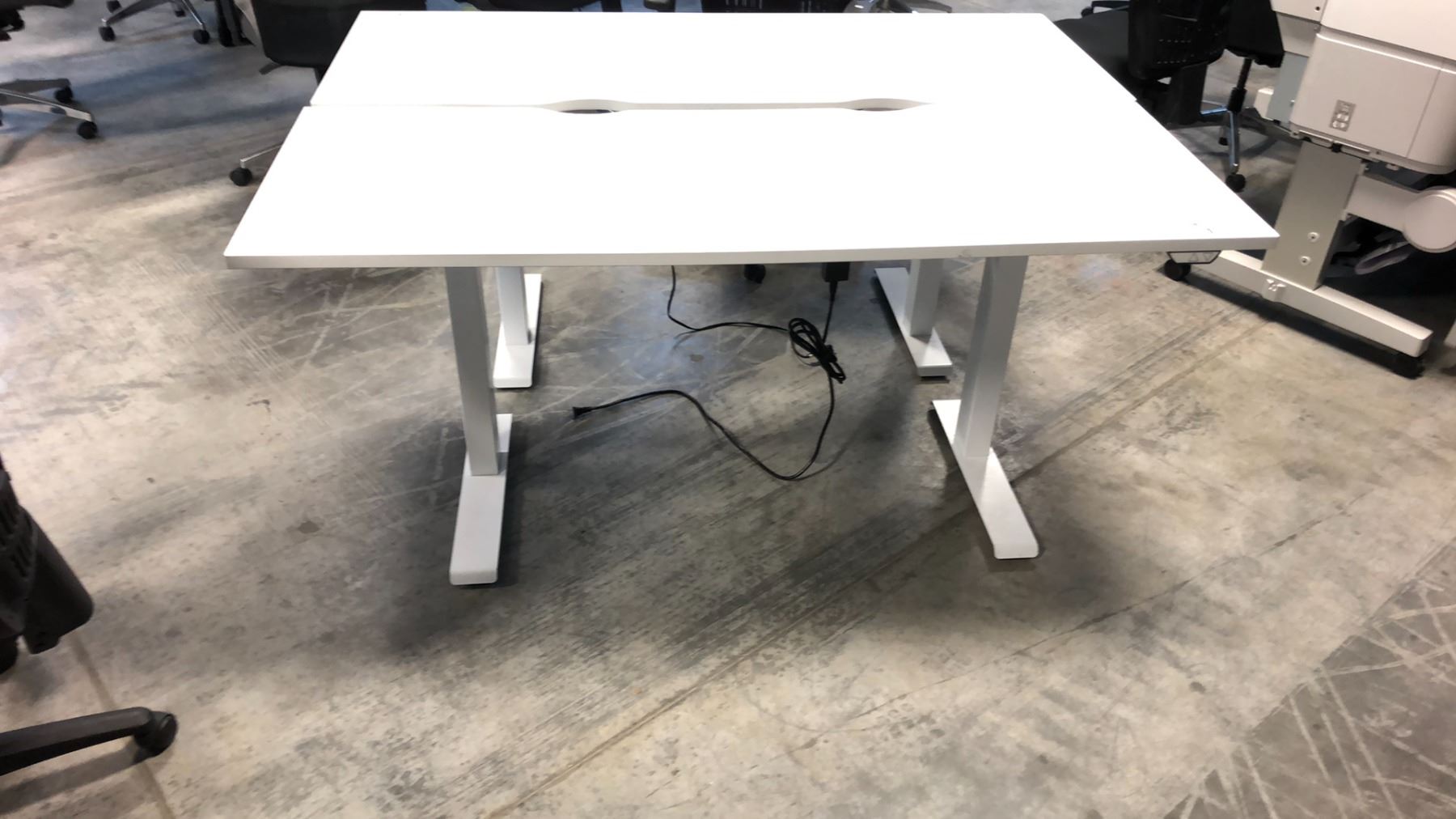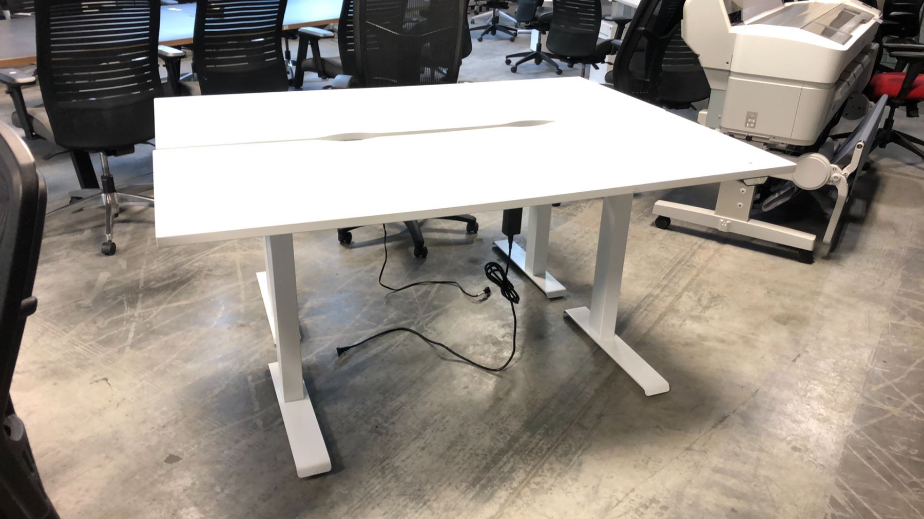 GLOBAL BOULEVARD GREY 66  X 24  ELECTRIC SIT/STAND PROGRAMMERS TABLE