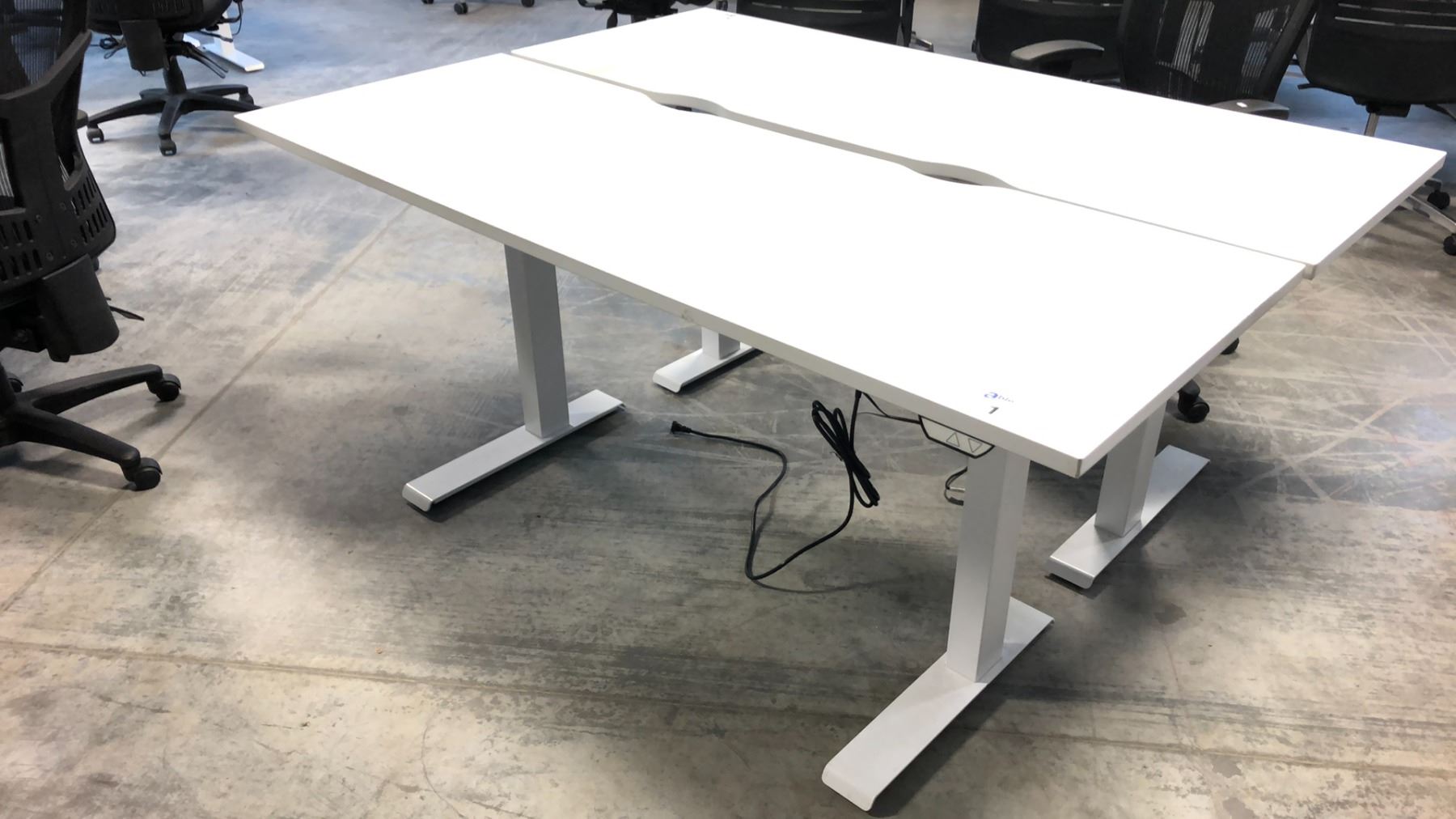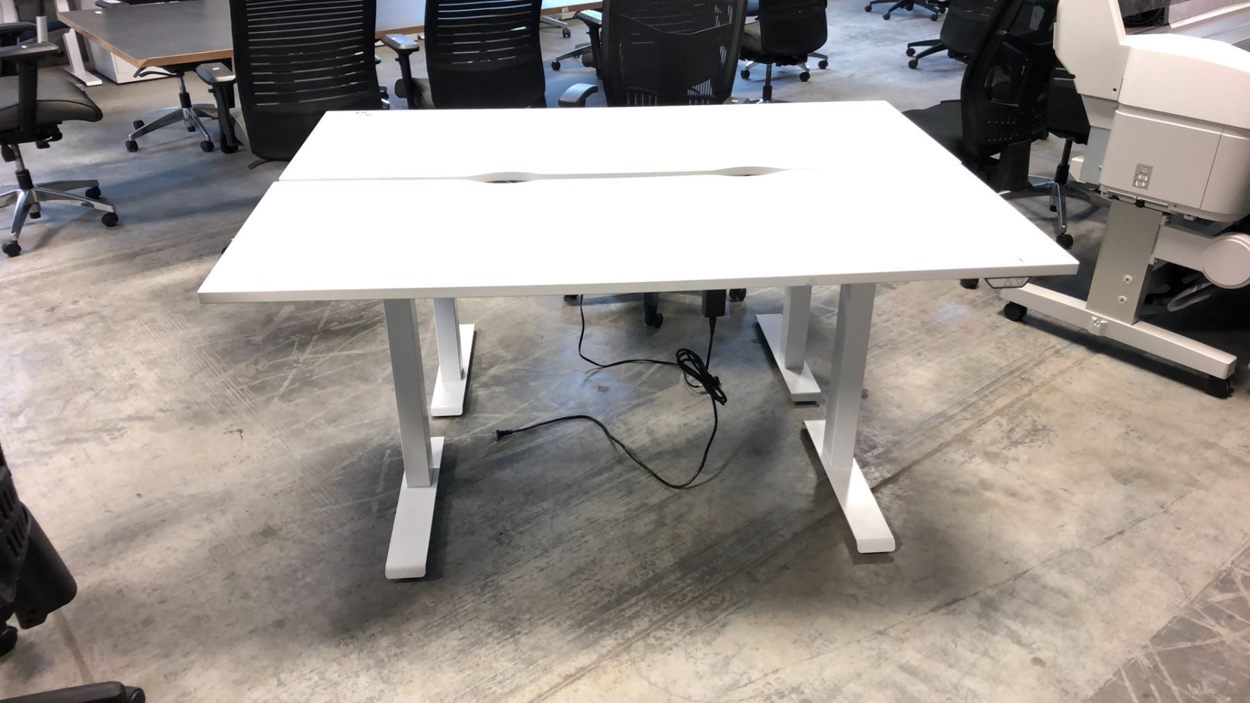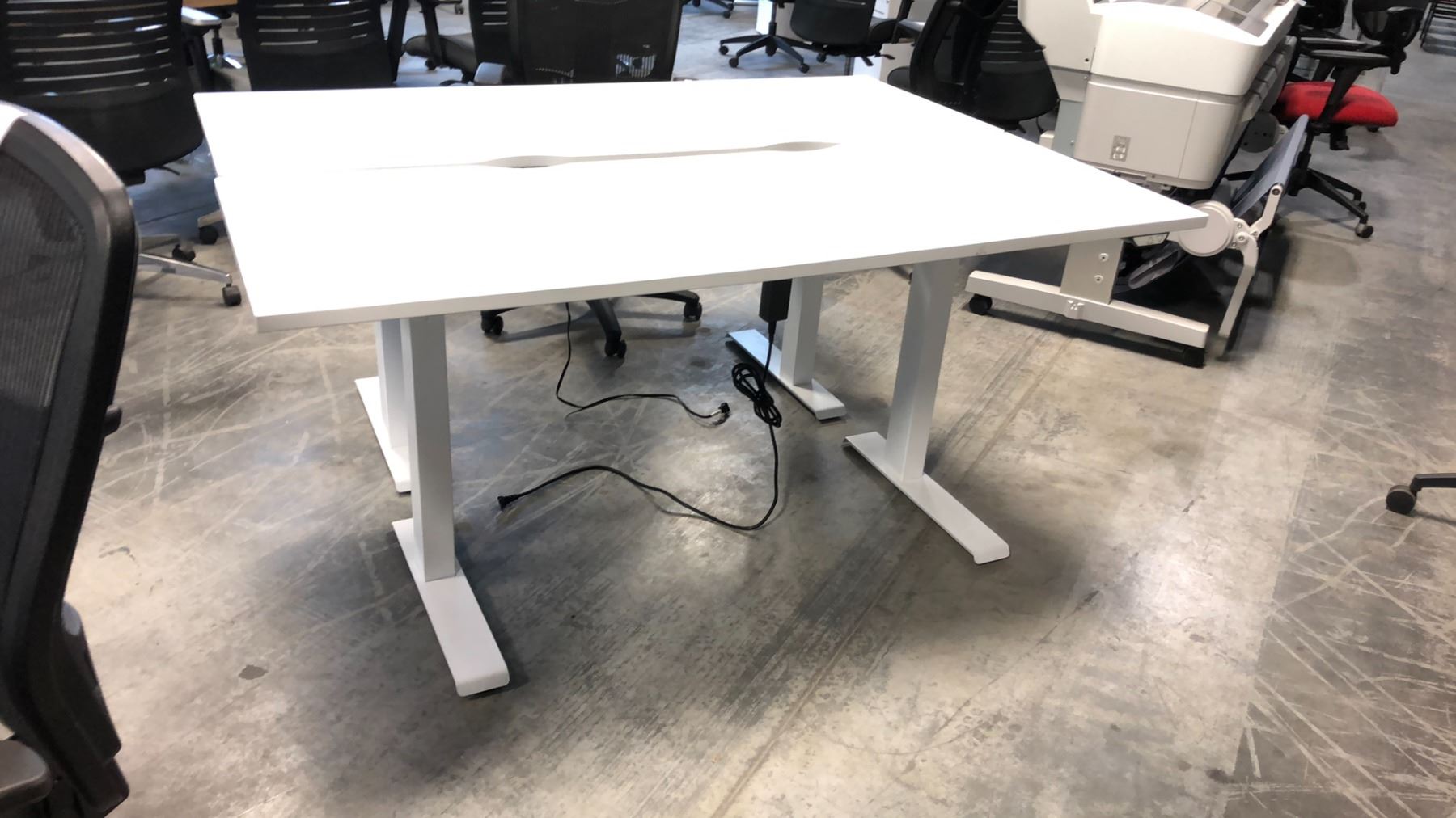 GLOBAL BOULEVARD GREY 66  X 24  ELECTRIC SIT/STAND PROGRAMMERS TABLE