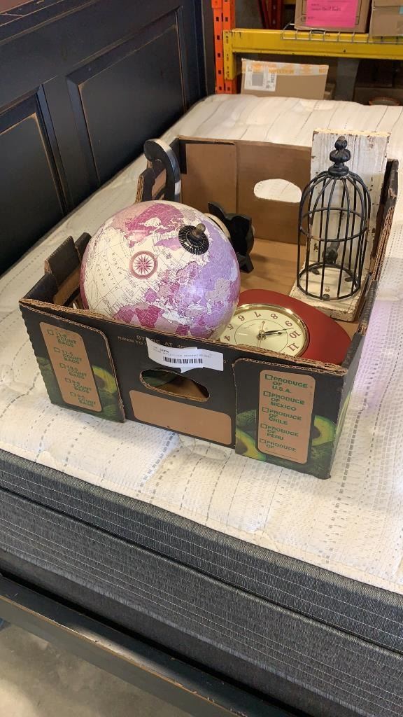 GLOBE, APPLE CLOCK, DECORATIVE BIRD CAGE AND CAT ORGANIZER