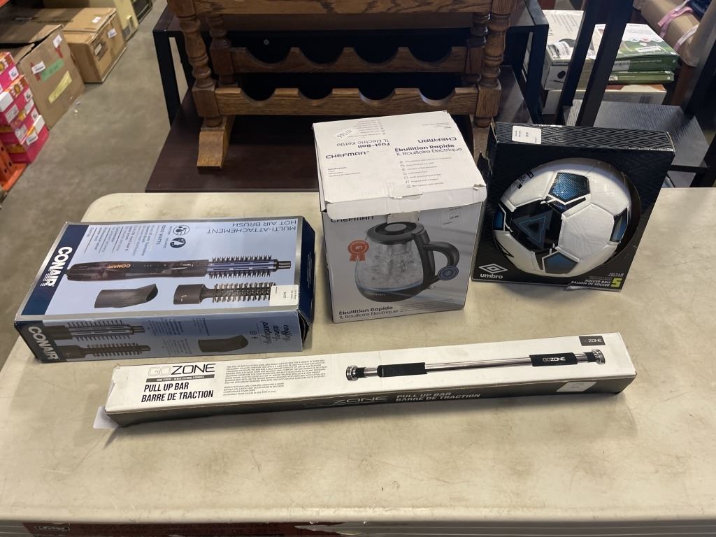 GO ZONE PULL-UP BAR UMBRO SOCCER BALL CHEFMAN FAST BOIL ELECTRIC KETTLE AND CONAIR HOT AIR BRUSH