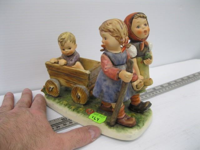 GOEBEL HUMMEL FIGURINE,  2 GIRLS WITH CART , APPROX. 6