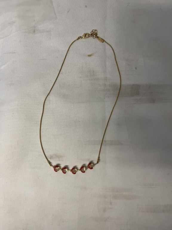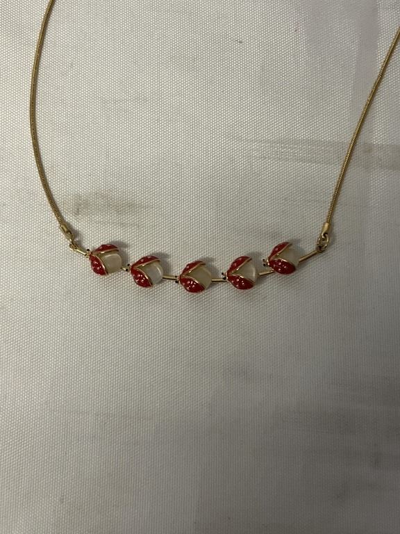 GOLD COLOUR ENAMEL LADYBUGS NECKLACE MARKED 18K GP