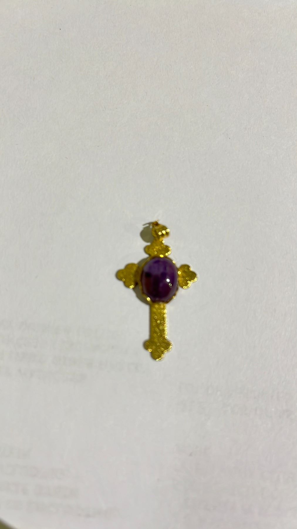 GOLD CROSS PURPLE JADE STONE PENDANT