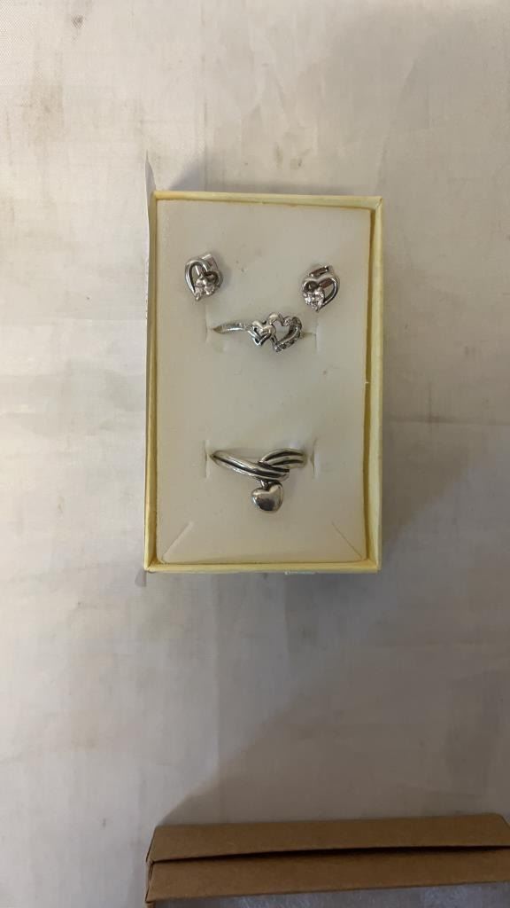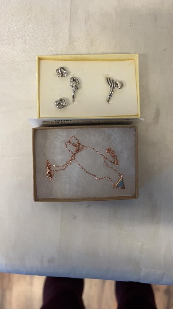 GOLD PLATED 925 STERLING NECKLACE, 2 925 RINGS AND 925 EARINGS