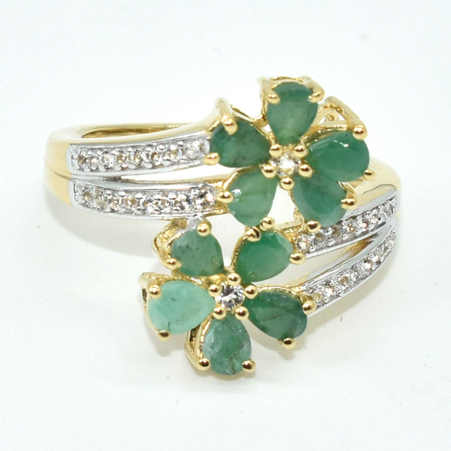 GOLD PLATED SIL EMERALD WHITE TOPAZ (14.5CT) RING