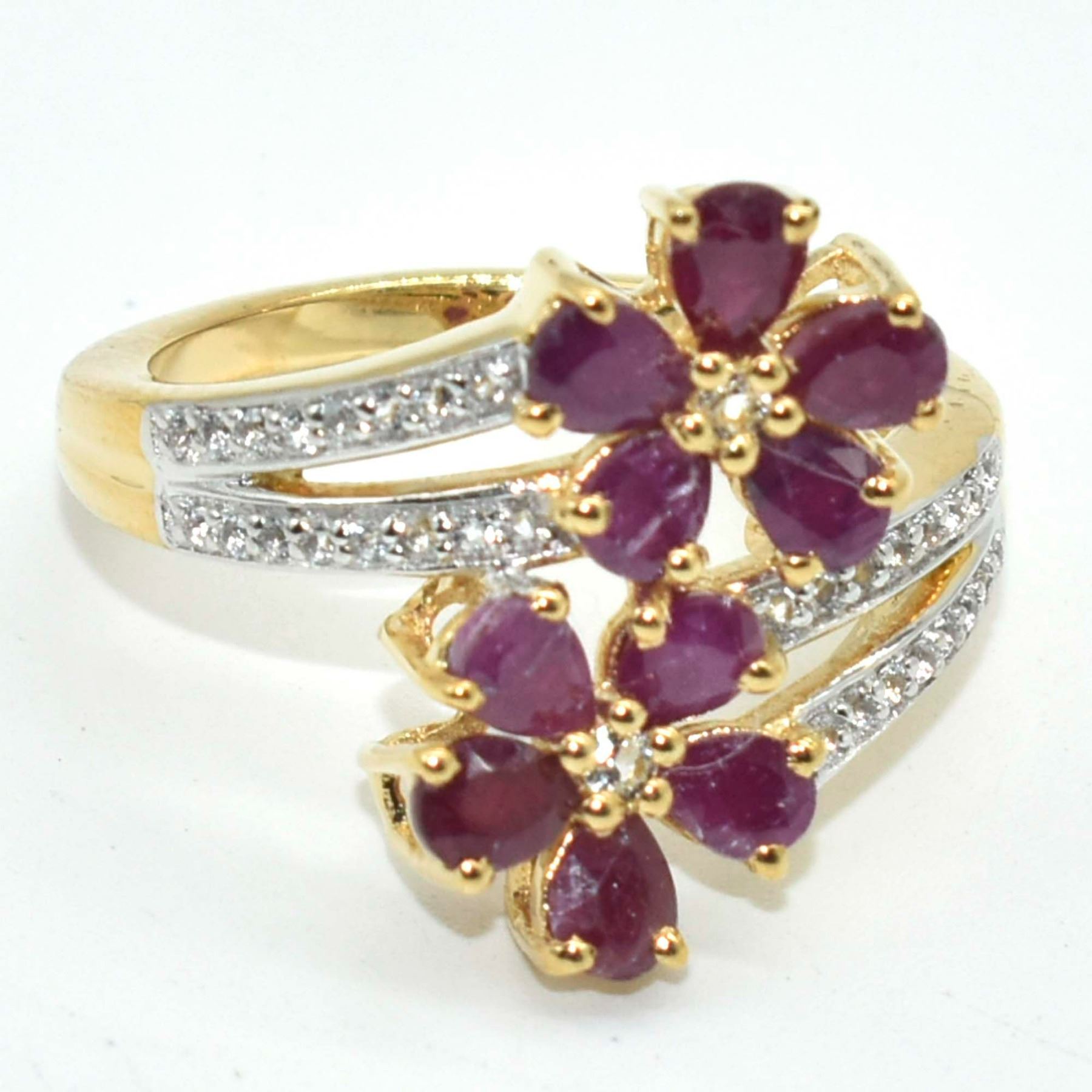 GOLD PLATED SIL RUBY WHITE TOPAZ (14.5CT) RING