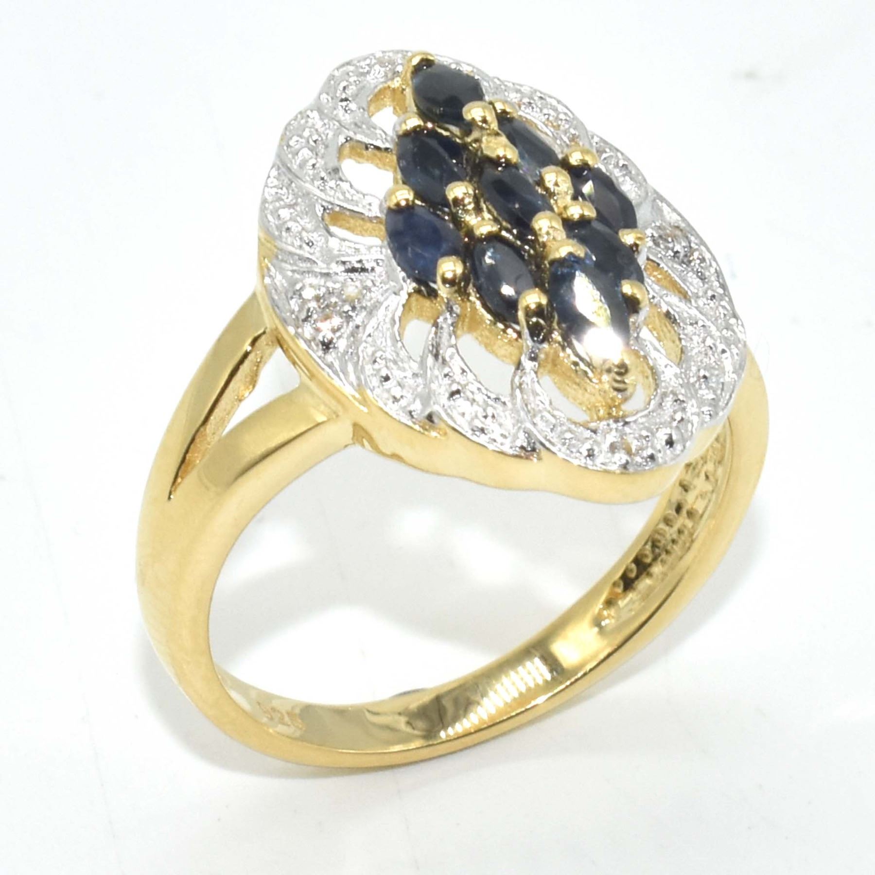 GOLD PLATED SILVER BLUE SAPPHIRE(1.8CT) GOLD RHODIUM PLATED RING (~SIZE 7) (~WEIGHT 4.2G)