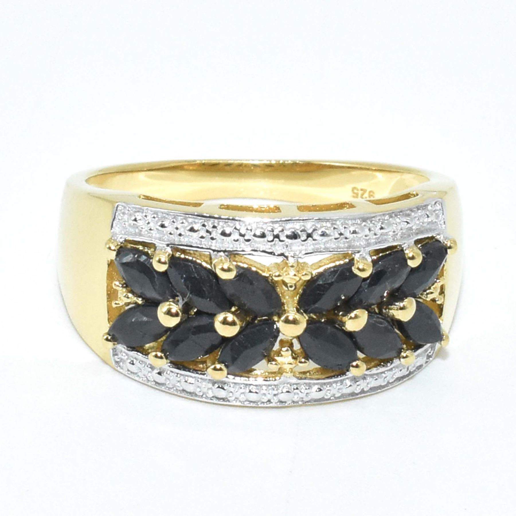 GOLD PLATED SILVER BLUE SAPPHIRE(2.15CT) GOLD RHODIUM PLATED RING (~SIZE 7) (~WEIGHT 4.55G)