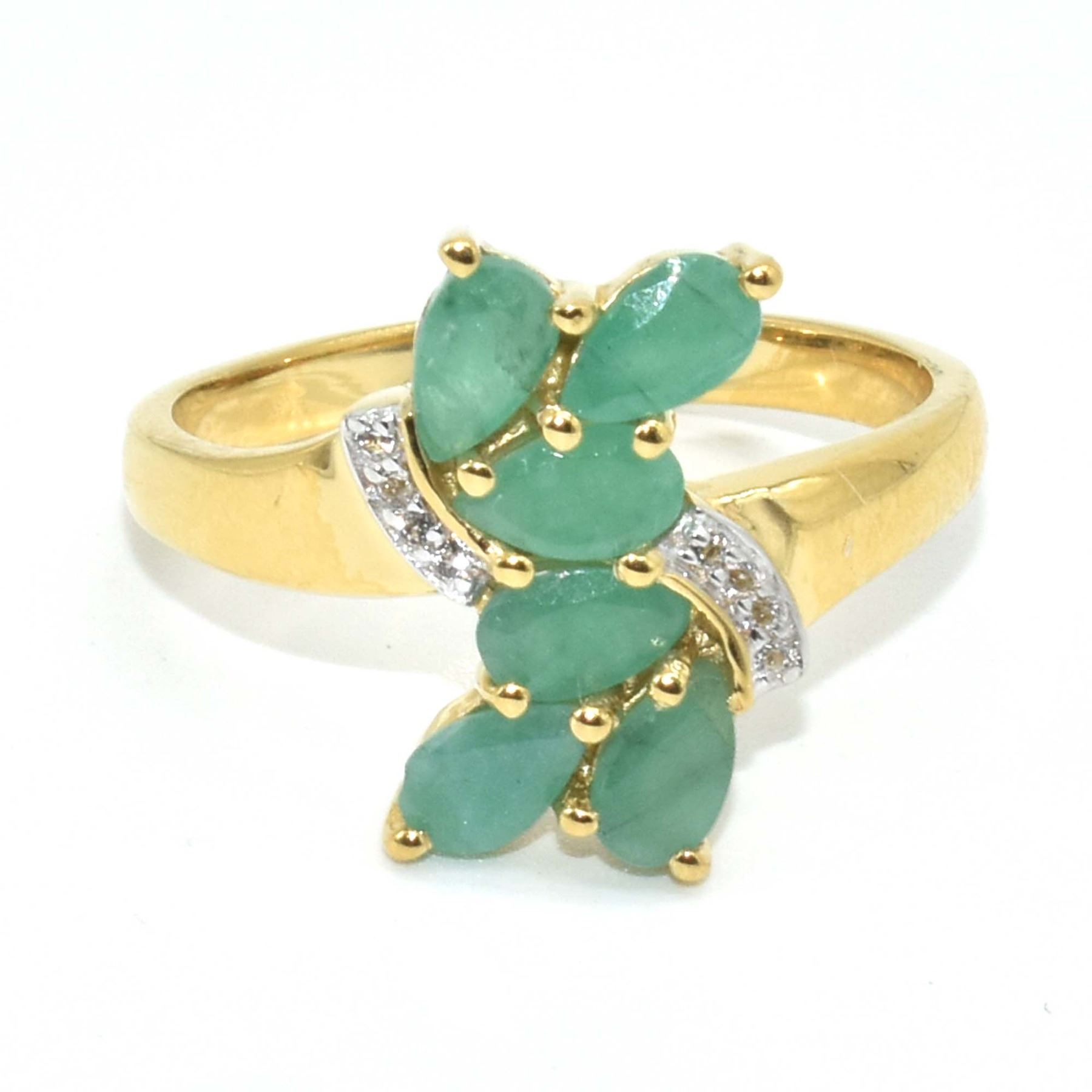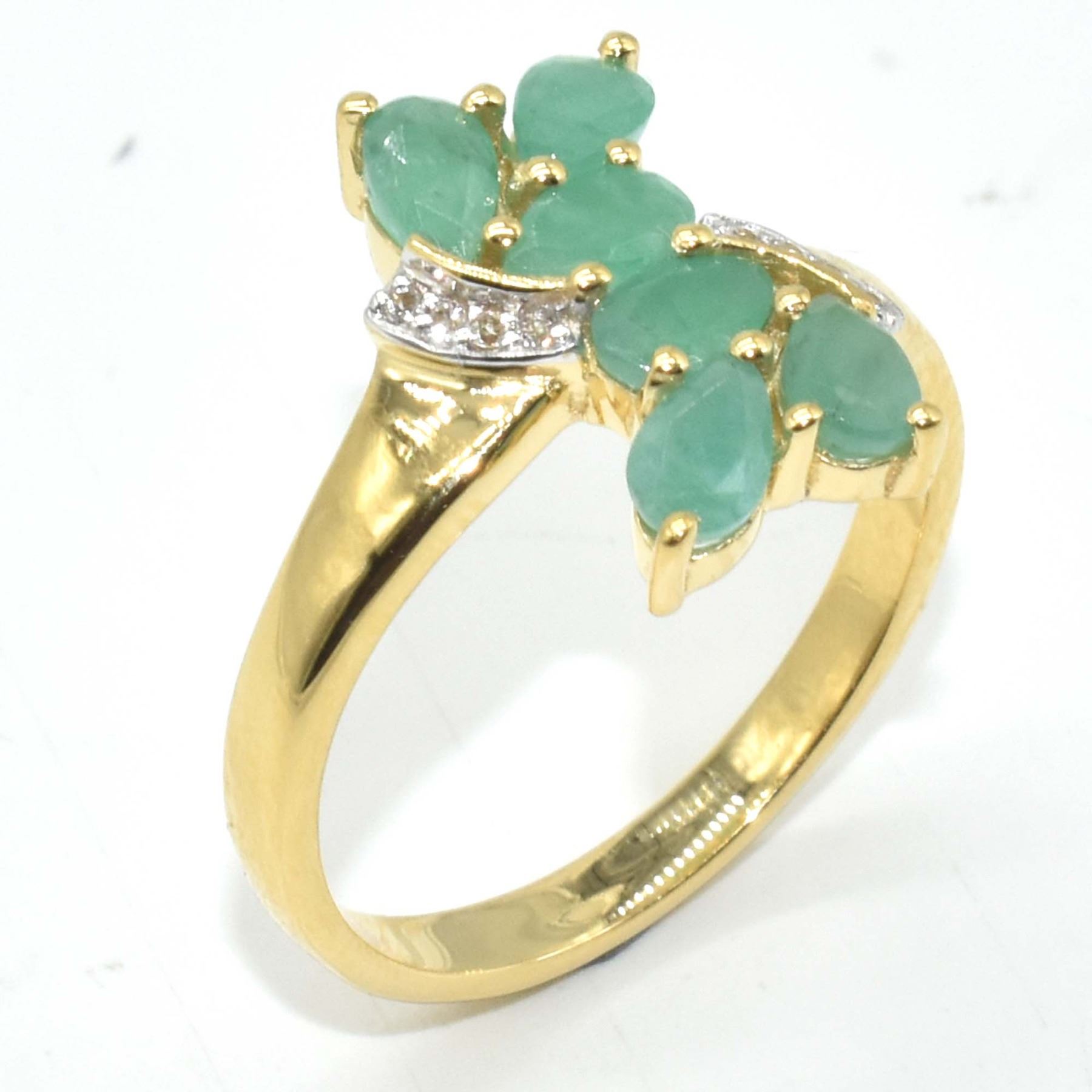 GOLD PLATED SILVER EMERALD WHITE TOPAZ(4.2CT) GOLD RHODIUM PLATED RING (~SIZE 7) (~WEIGHT 3.05G)