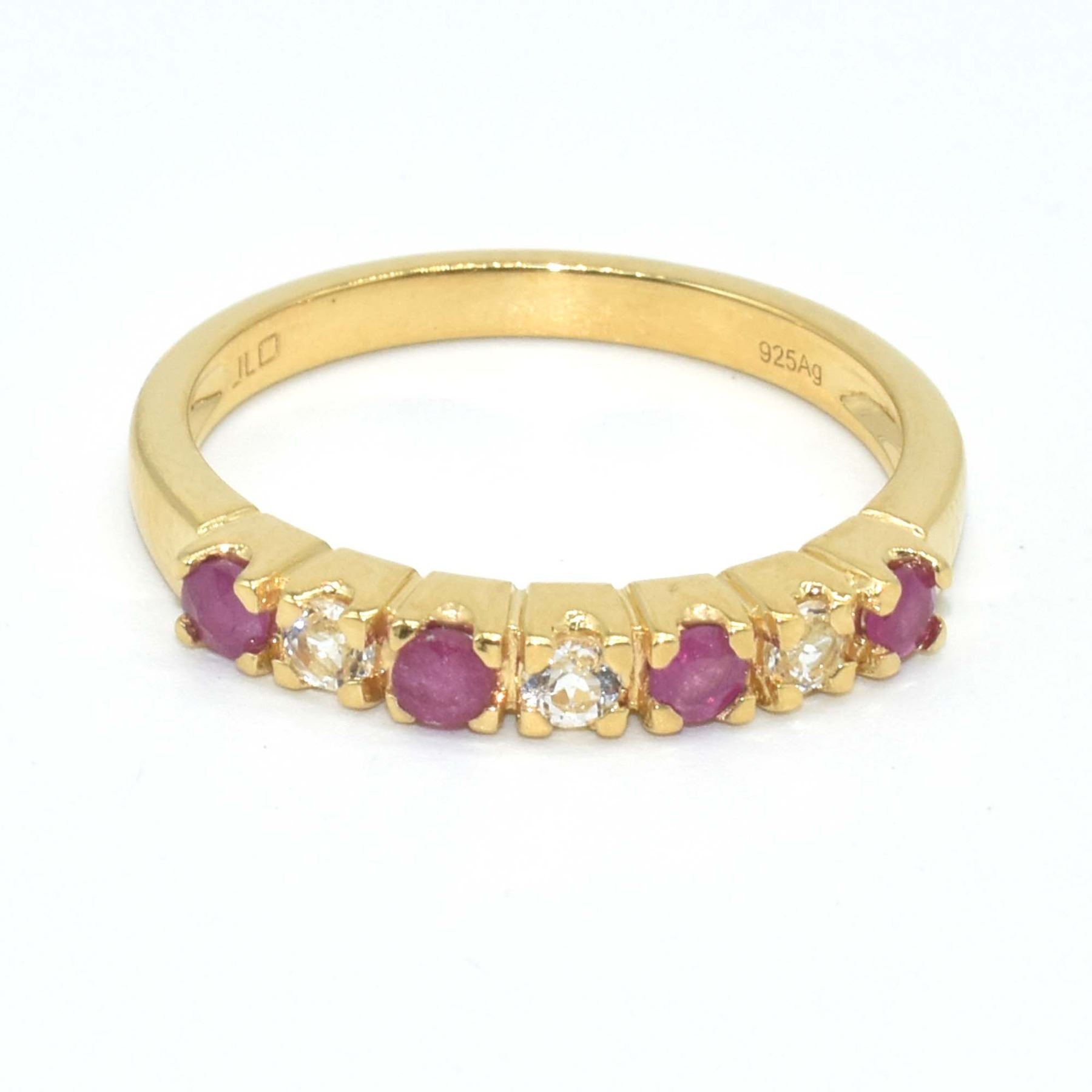 GOLD PLATED SILVER RUBY SAPPHIRE(0.95CT) GOLD RHODIUM PLATED RING (~SIZE 8) (~WEIGHT 2.55G)