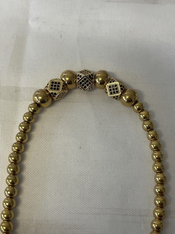 GOLD PLATED STAINLESS STEEL W/ TINY BLACK FACETED STONES NECKLACE
