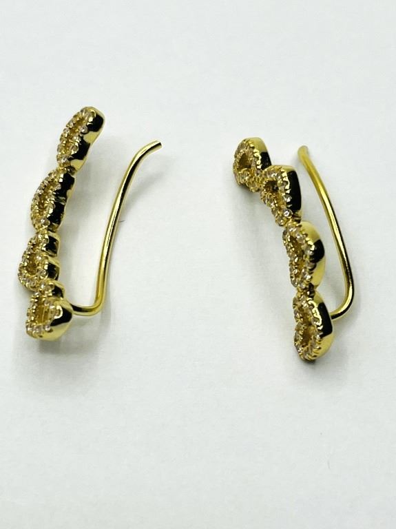GOLD PLATED STERLING SILVER CZ (0.75CT) EARRINGS, W/A $260.00.