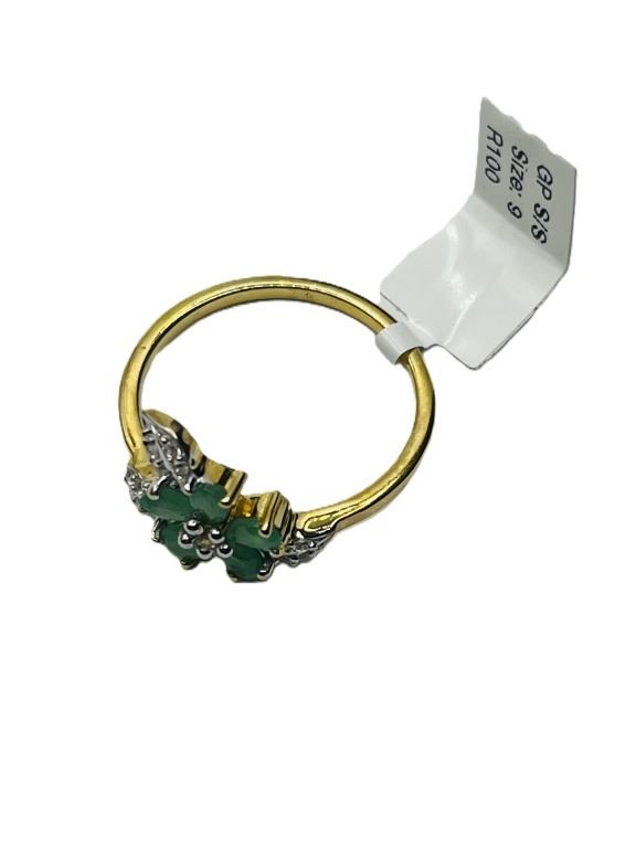 GOLD PLATED STERLING SILVER NATURAL EMERALD (1CT) WITH NATURAL WHITE TOPAZ (0.30CT) RING, SIZE 9, RE