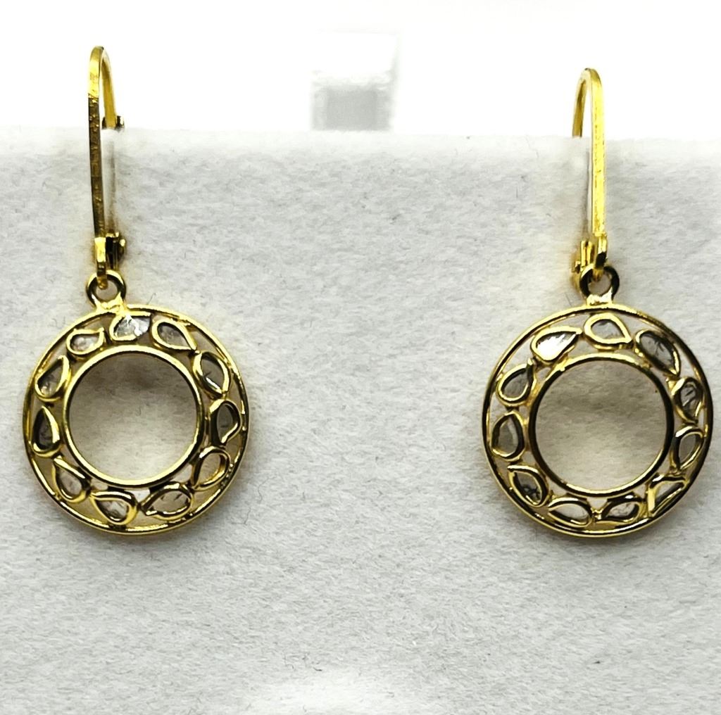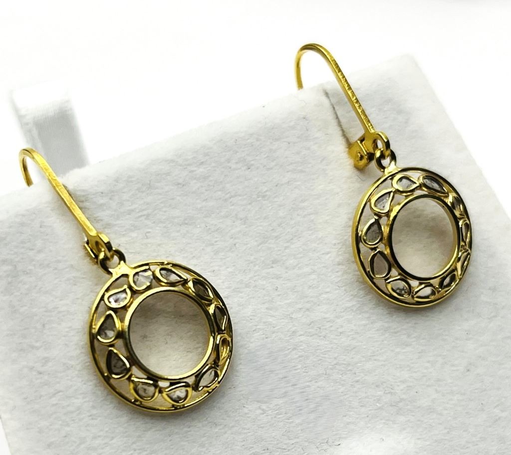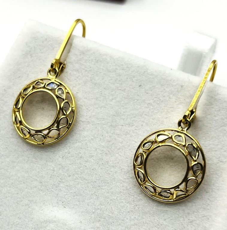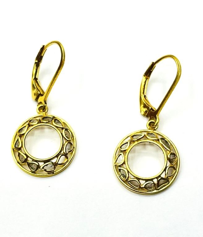 GOLD PLATED STERLING SILVER NATURAL ROSE CUT DIAMOND (0.25CT) DROP STYLE EARRINGS, W/A $370.00. DIAMOND IS THE BIRTHSTONE FOR APRIL.
