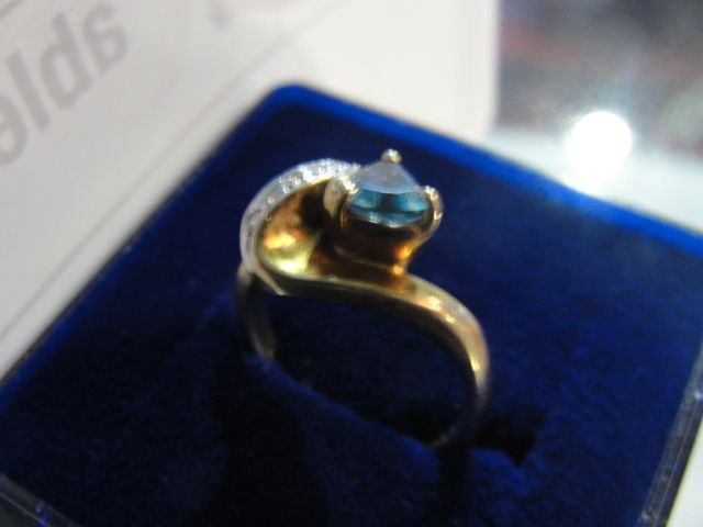 GOLD RING NO STAMP WITH BLUE TOPAZ & DIAMONDS