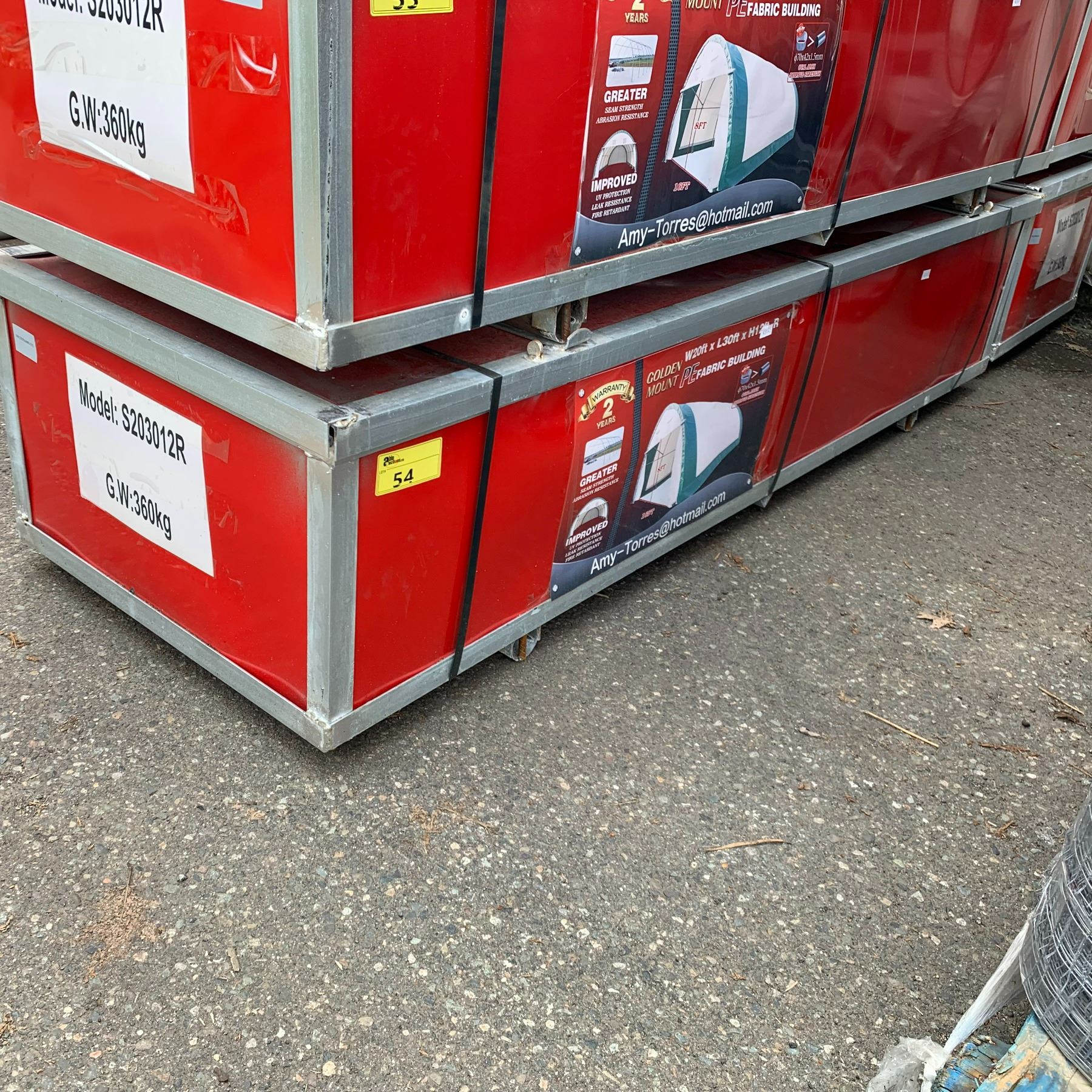 GOLDEN MOUNT 20' X 30' X 12' HIGH ROUND ROOF PE FABRIC BUILDING WITH 16' X 8' ROLL DOOR WEIGHT 360 KGS * IN CRATE *