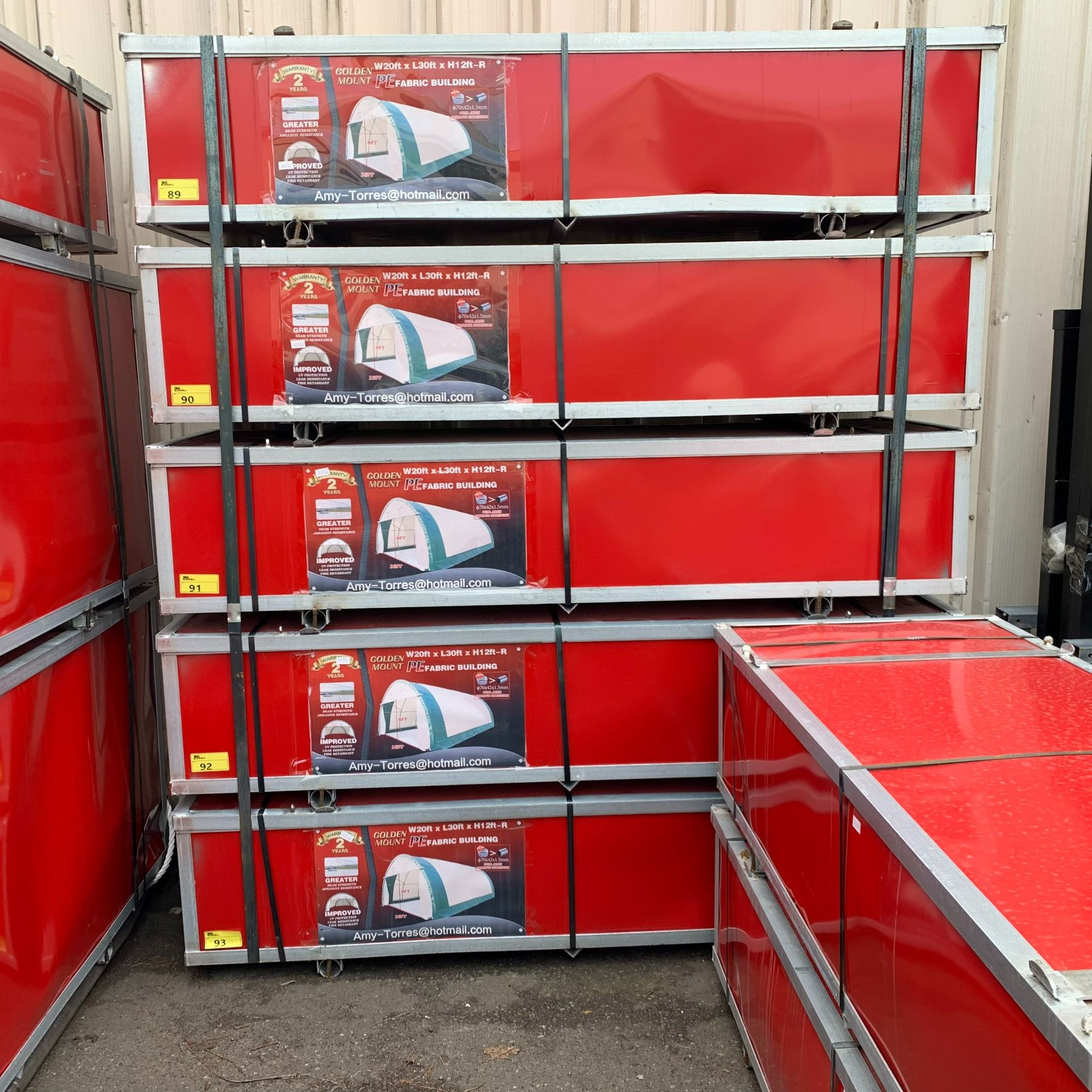 GOLDEN MOUNT 20' X 30' X 12' HIGH ROUND ROOF PE FABRIC BUILDING WITH 16' X 8' ROLL DOOR WEIGHT 360 KGS * IN CRATE *