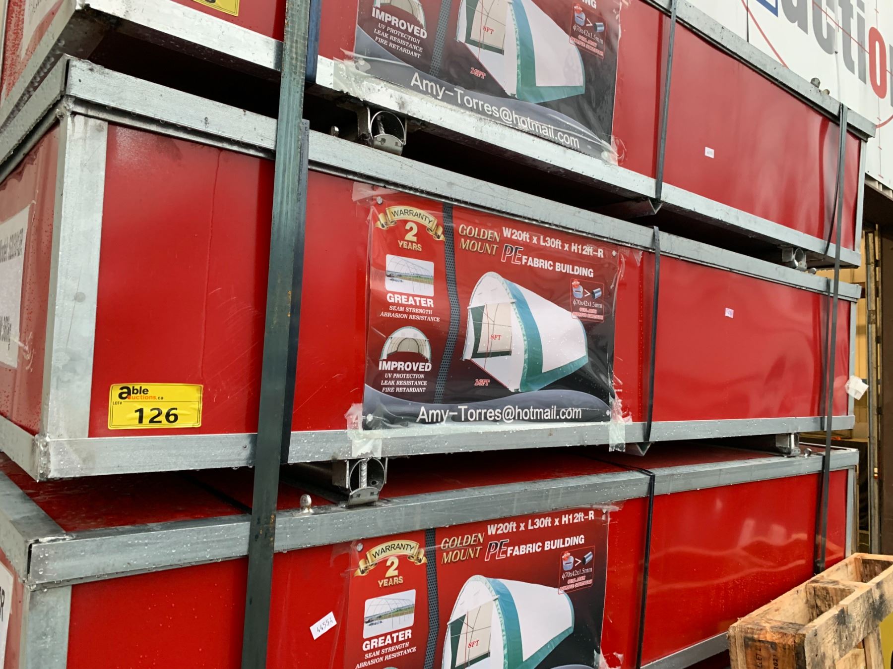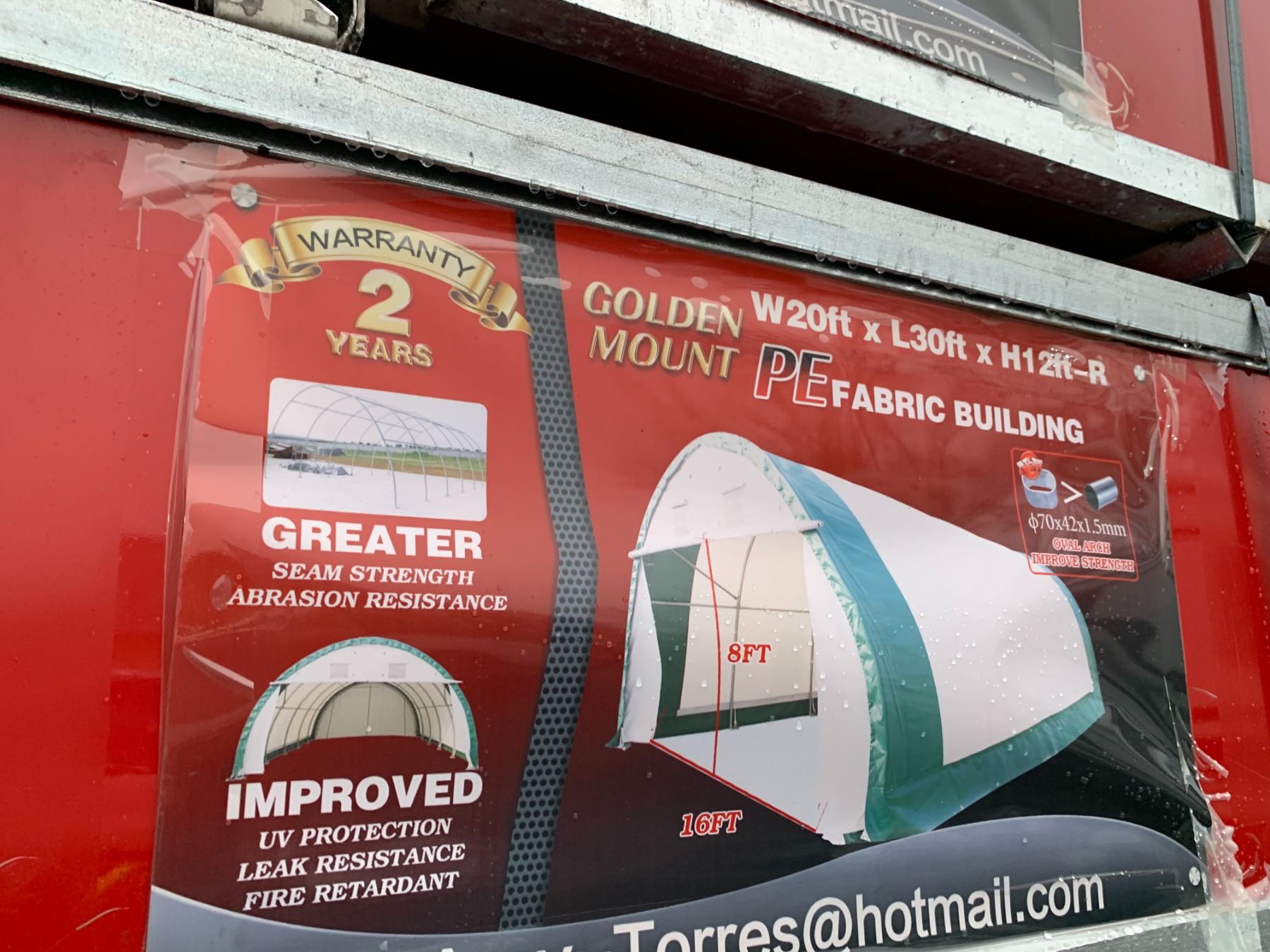 GOLDEN MOUNT 20' X 30' X 12' HIGH ROUND ROOF PE FABRIC BUILDING WITH 16' X 8' ROLL DOOR *IN CRATE GROSS WEIGHT 360 KG*