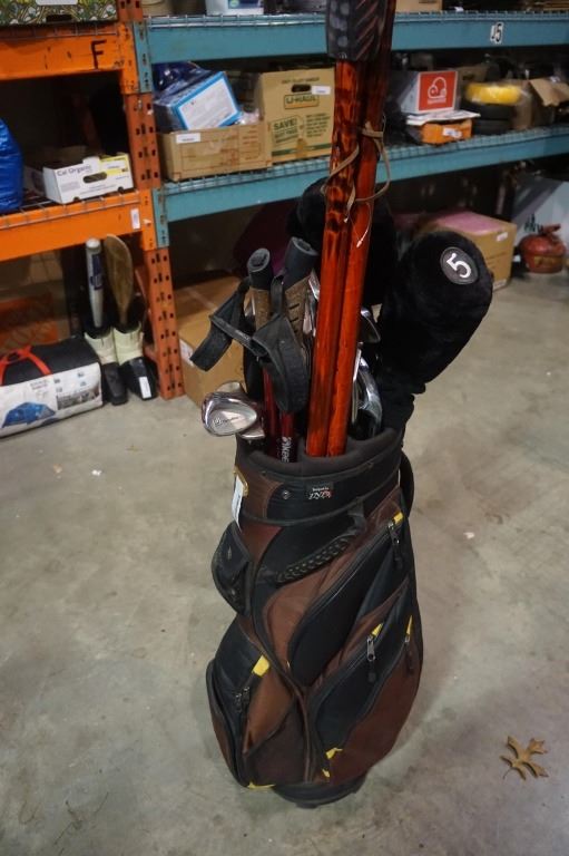 GOLF CLUBS IN BAG AND WALKING POLES