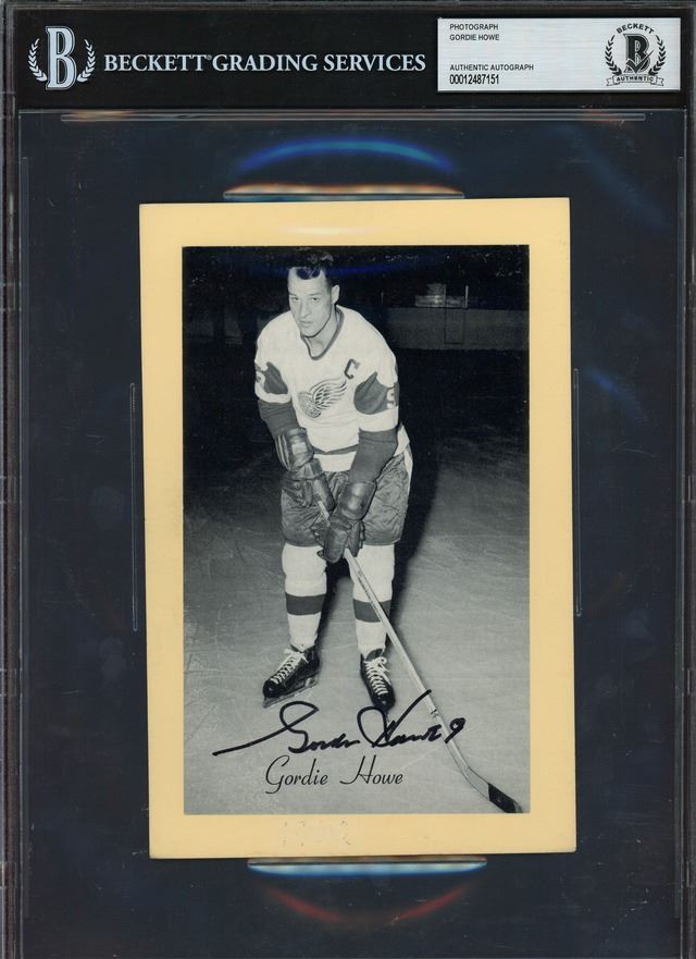 GORDIE HOWE SIGNED 5 X 7 BEEHIVE ( BECKETT COA)