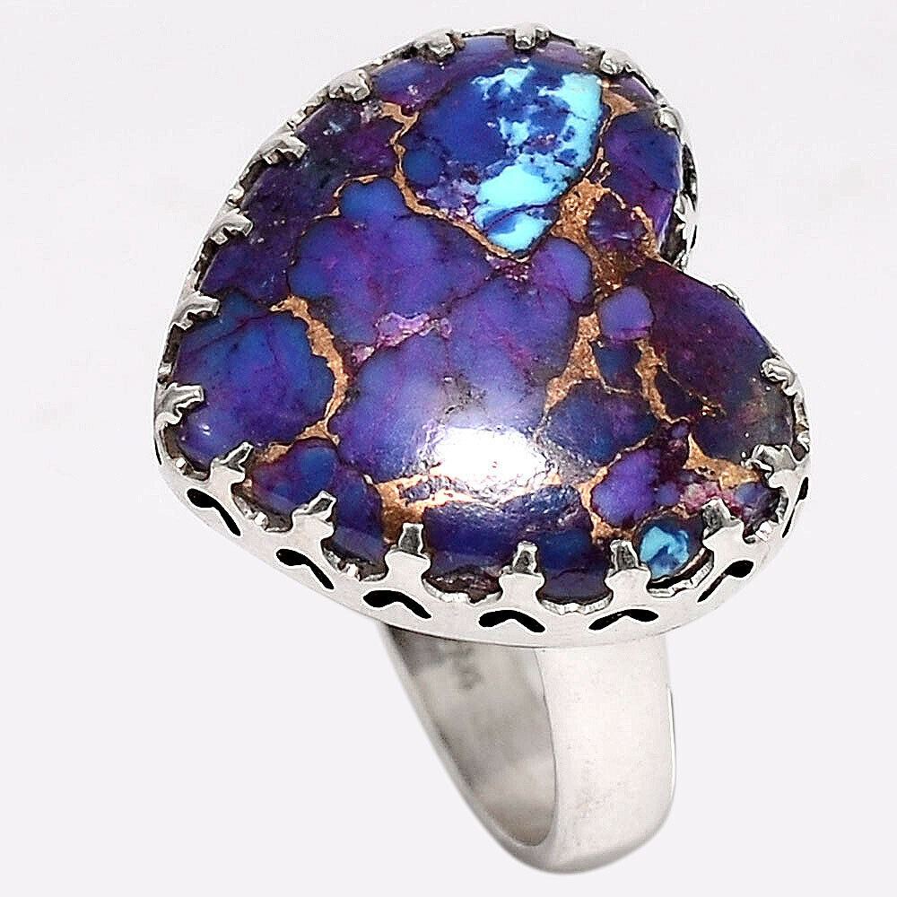 GORGEOUS 11 CT NATURAL ARIZONA PURPLE TURQUOISE AND COPPER HIGHLIGHTS RING. MOUNTED IN SOLID .925 STERLING SILVER 5.7 TOTAL GRAM Wt.VERY UNIQUE PURPLE HEART CUT. PRETTY !