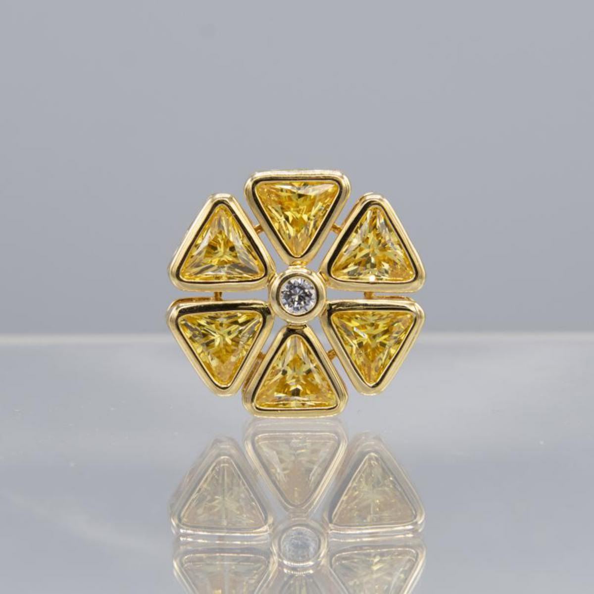 GORGEOUS 14 Kt GOLD PLATED FLOWER PENDANT.This Pendant Features Six 15 Cttw Lab Diamonds. These Created Diamonds Are Mounted In 14 Kt Yellow Gold Over Solid .925 Stamped Sterling Silver. 82.5 Cttw or 16.5 Total Gram Wt.Absolutely Stunning