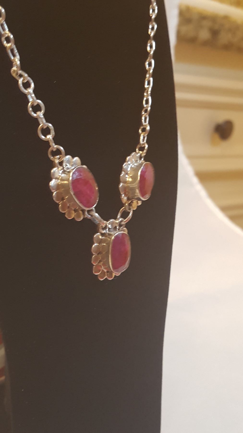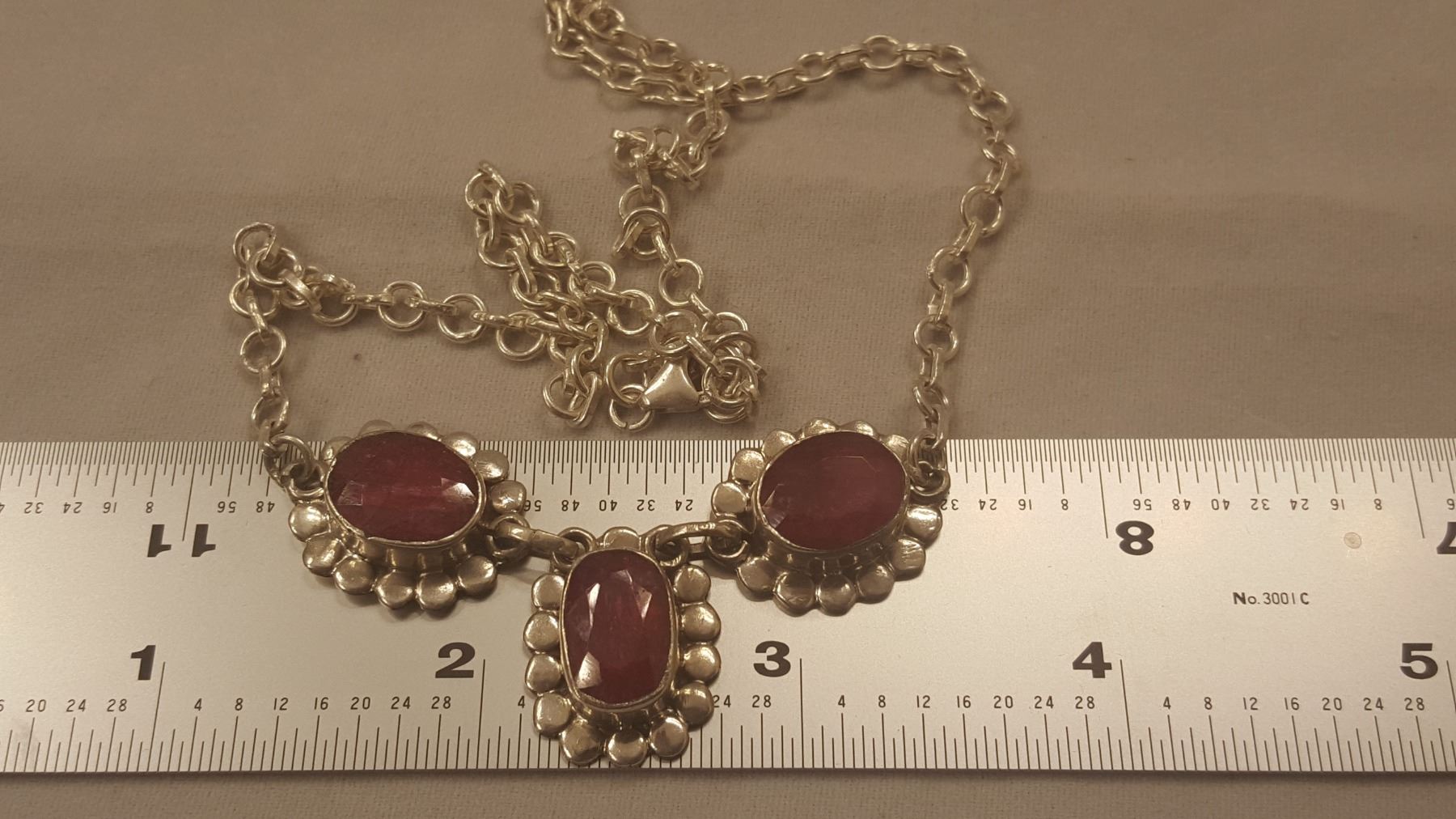 GORGEOUS 23.5 CT RUBY NECKLACE. MOUNTED IN SOLID .925 STERLING SILVER.17 " LONG . 103.50 CTTW. VERY UNIQUE PIECE. STUNNING