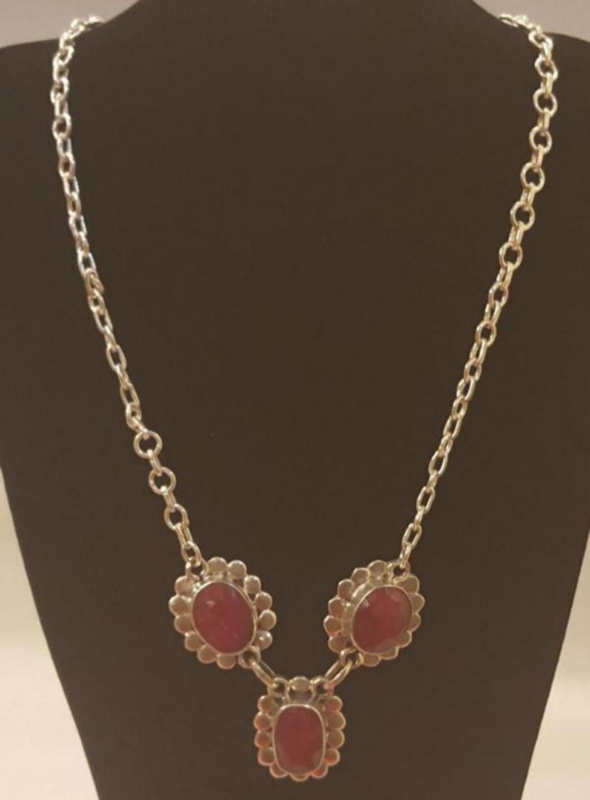 GORGEOUS 23.5 CT RUBY NECKLACE. MOUNTED IN SOLID .925 STERLING SILVER.17 " LONG . 103.50 CTTW. VERY UNIQUE PIECE. STUNNING