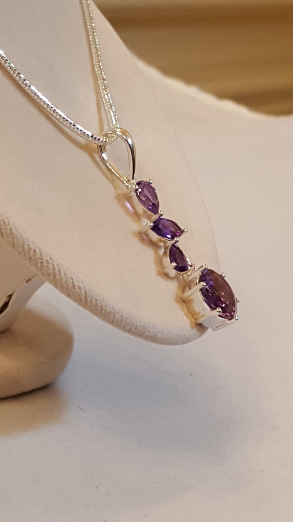 GORGEOUS 5 CT AMETHYST PENDANT. MOUNTED IN SOLID .925 STERLING SILVER.INCLUDES 20" LONG 2mm. CHAIN. 56 CTTW .