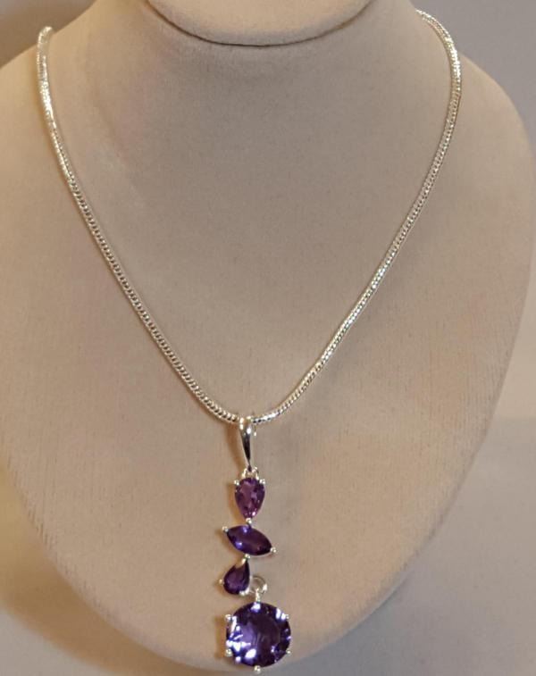 GORGEOUS 5 CT AMETHYST PENDANT. MOUNTED IN SOLID .925 STERLING SILVER.INCLUDES 20" LONG 2mm. CHAIN. 56 CTTW .