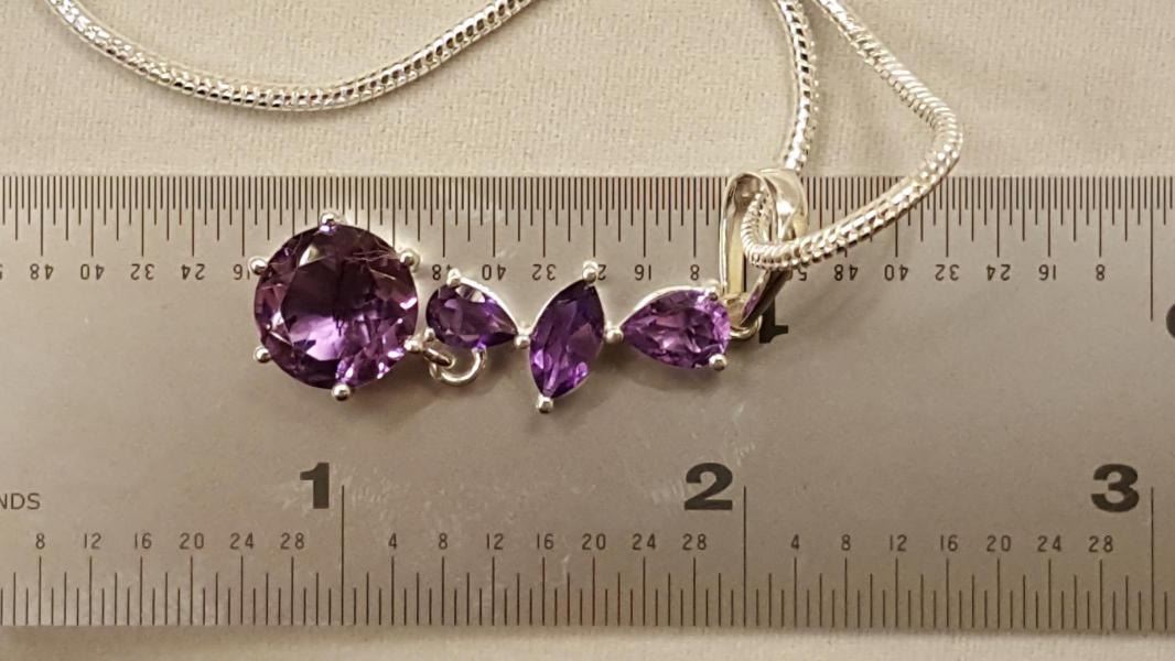 GORGEOUS 5 CT AMETHYST PENDANT. MOUNTED IN SOLID .925 STERLING SILVER.INCLUDES 20" LONG 2mm. CHAIN. 56 CTTW .