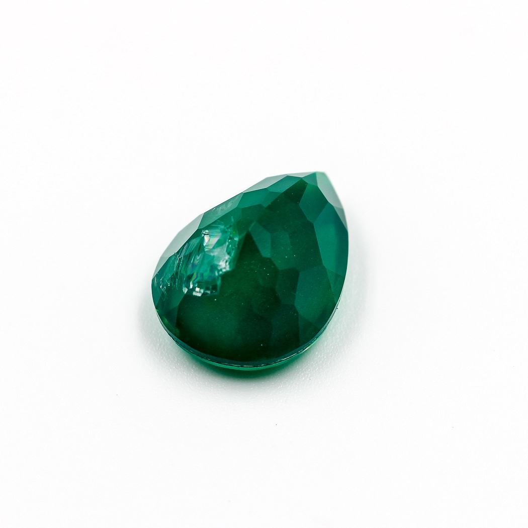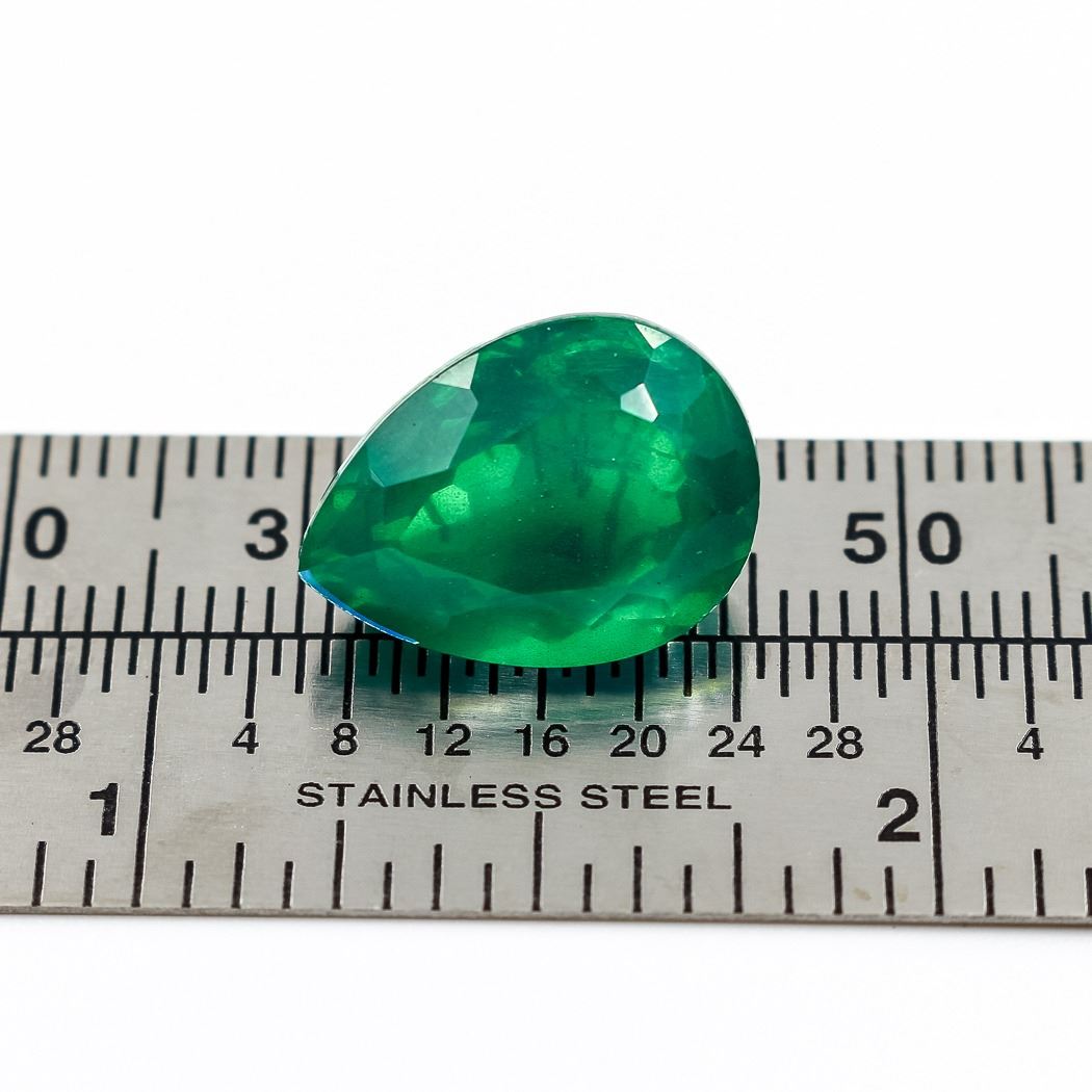 GORGEOUS 7.69 CT EMERALD CENTERSTONE. THIS RUSSIAN LAB CREATED EMERALD IS NEAR FLAWLESS DISPLAYING A BRILLIANT BRIGHT EMERALD GREEN HUE ALONG WITH.STRONG SATURATION AND EVEN HUE.PEARR CUT MEASURING 11.3 x 15.5 x 8.5 mm. NEAR FLAWLESS AND READY TO MOUNT. THIS STONE IS MEASMURIZING.