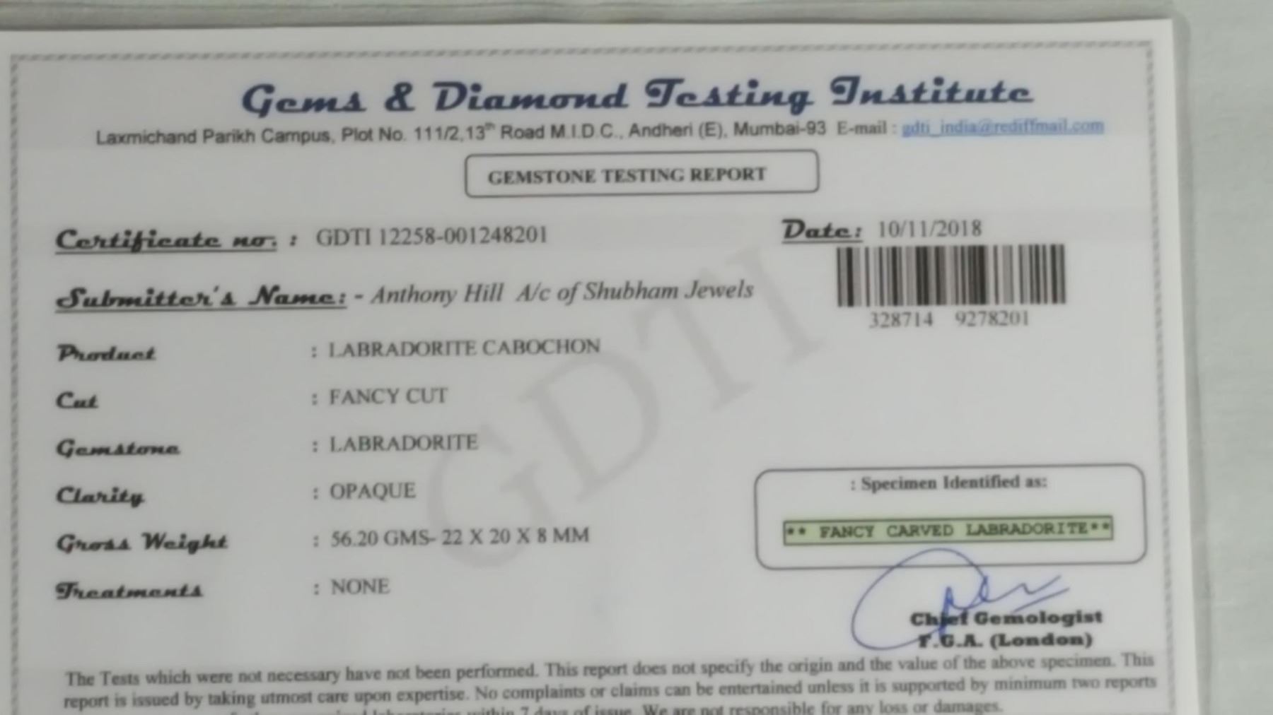 GORGEOUS CERTIFIED 281 CT LUMINICENT NATURAL LABRADORITE.CABOCHON CUT MEASURING 22 x 20 x 8 mm. HIGH LUSTER AND POLISH. A VAST ARRAY OF COLORS.SIMPLY STUNNING. Labradorite is the stone of magical awakening. Experts say that it's vibrations cast a broad level of protection for negative energy. A stone of magic, serendipity and, synchronicity.