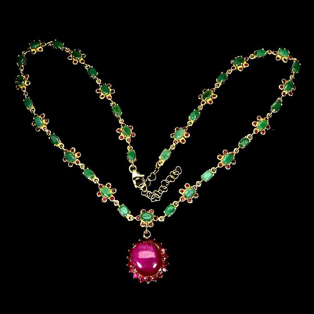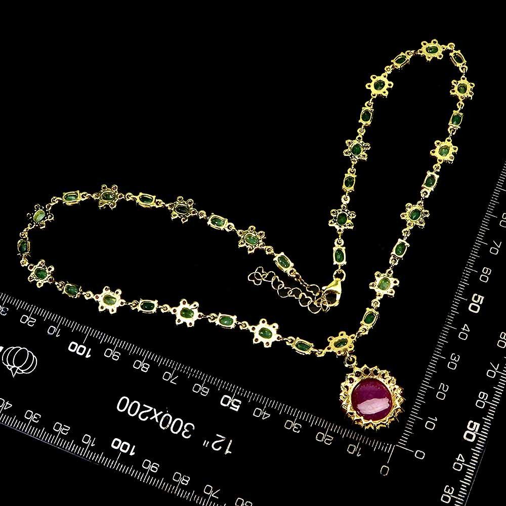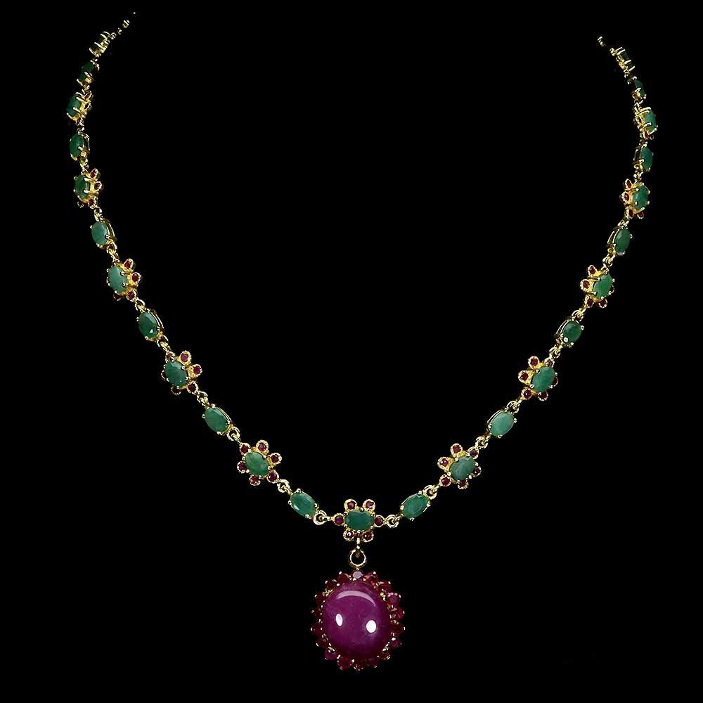 GORGEOUS EMERALD AND BIG RUBY NECKLACE IN 14K YELLOW PLATED GOLD OVER 925 STERLING SILVER - 18 INCHES - APPRAISED REPLACEMENT VALUE