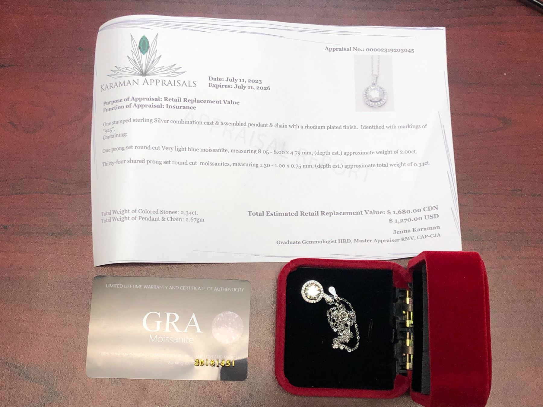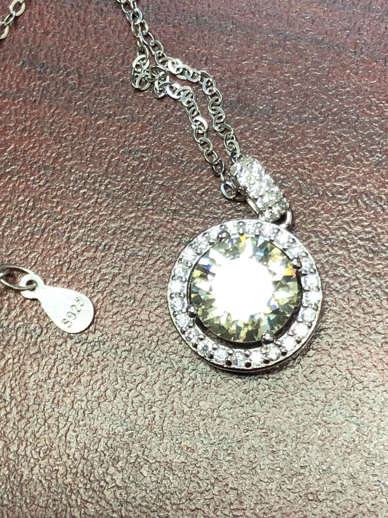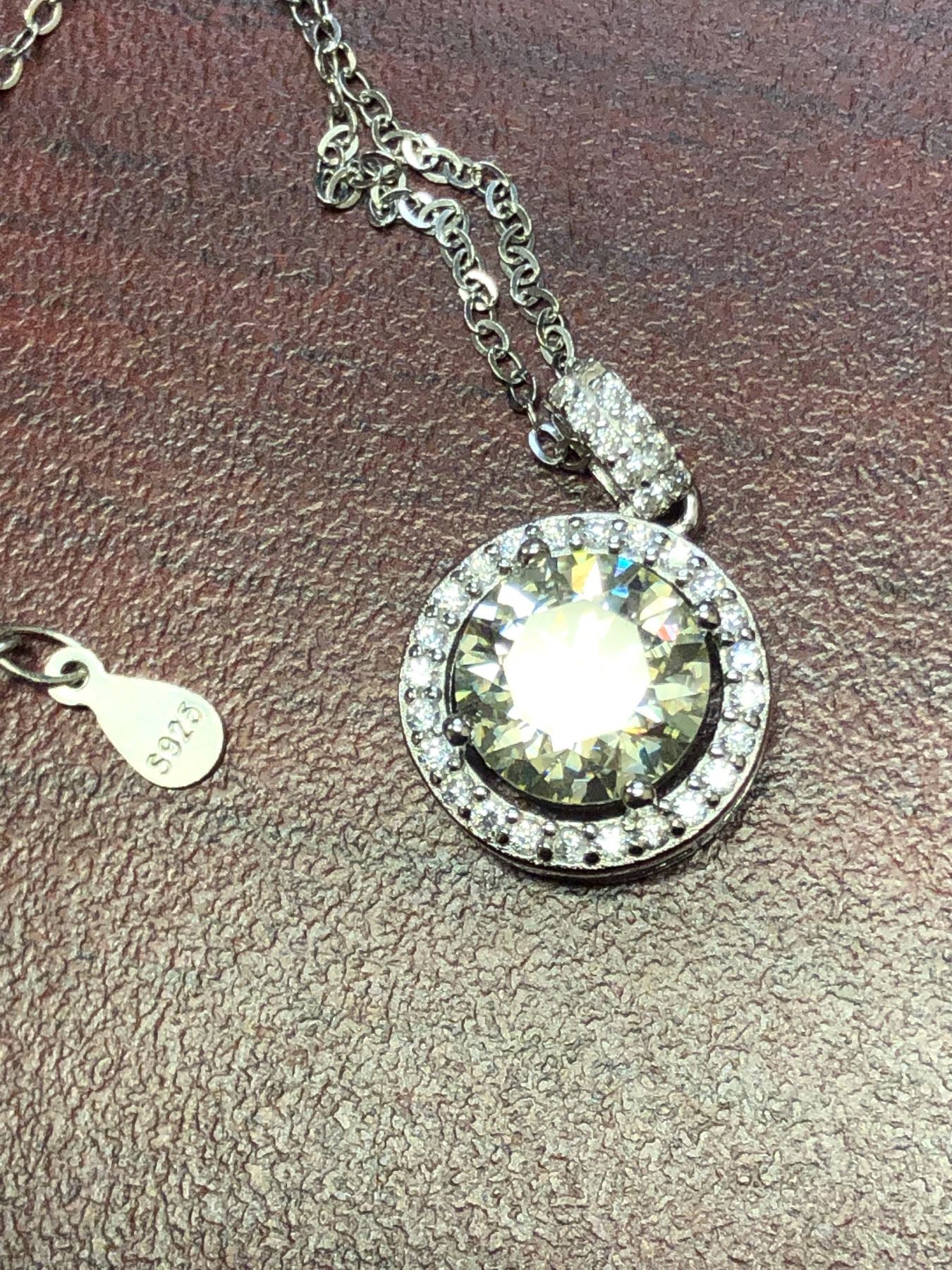 GRA CERTIFIED 2.0 CARAT MOISSANITE VVS D COLORED CENTER SURROUNDED BY HALO OF 34 MOISSANITE INCLUDING SOME SET IN BAIL SET IN 925 SILVER PENDANT AND NECKLACE VALUE $1,680.00