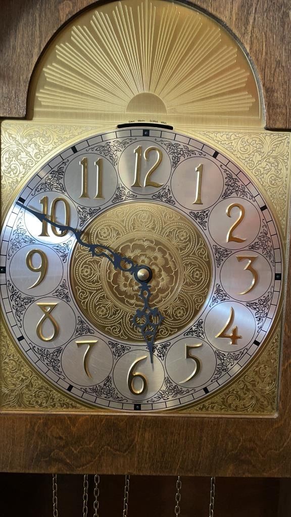 GRANDFATHER CLOCK WITH WEIGHTS AND PEDULUM