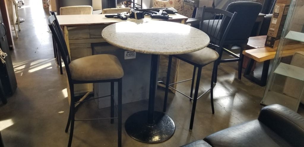 GRANITE CONVERSATION TABLE AND 2 CHAIRS