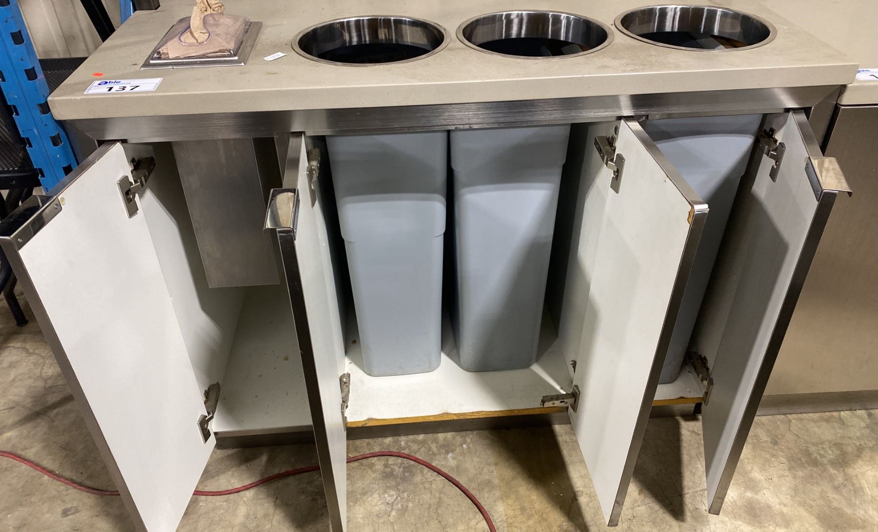 GRANITE TOP / STAINLESS STEEL 4 DOOR 48"W X 25 1/2"D X 36"H WASTE & CUTLERY STATION