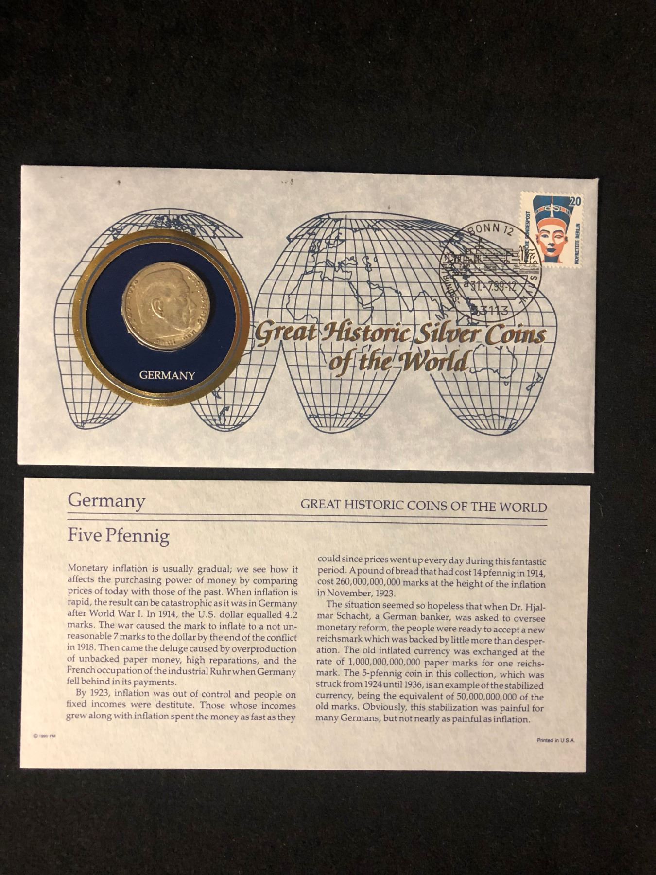 GREAT HISTORIC SILVER COINS OF THE WORLD SOLID SILVER .900 COIN AND FIRST DAY COVER