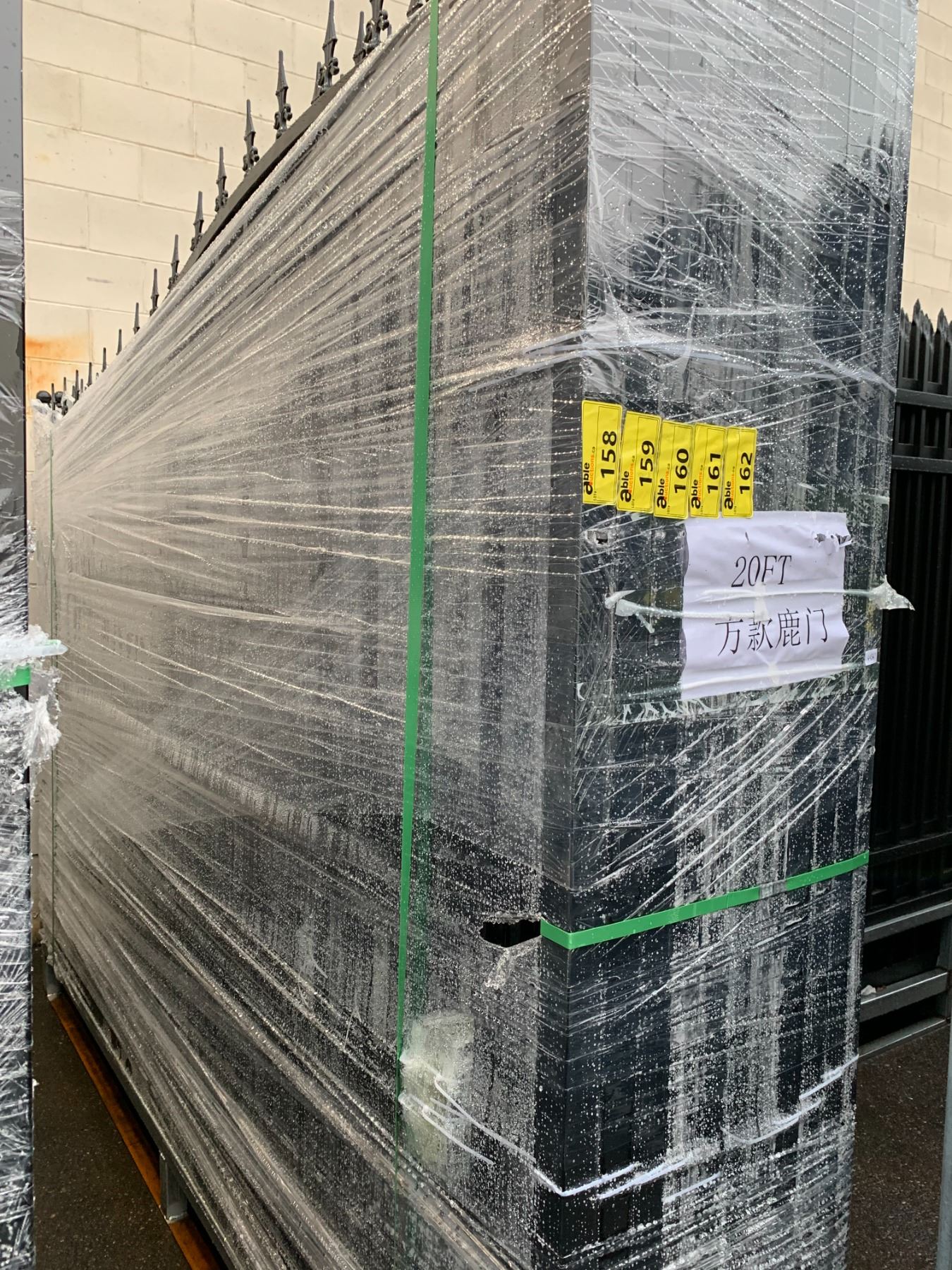 GREATBEAR 20FT BLACK WROUGHT IRON BI-PARTING DRIVEWAY GATE ( RECTANGULAR DEER ART WORK IN CENTRE ) 84" H TO CENTRE OF GATE MUST TAKE LEFT AND RIGHT SIDE *MUST HAVE SECOND PERSON FOR REMOVAL*