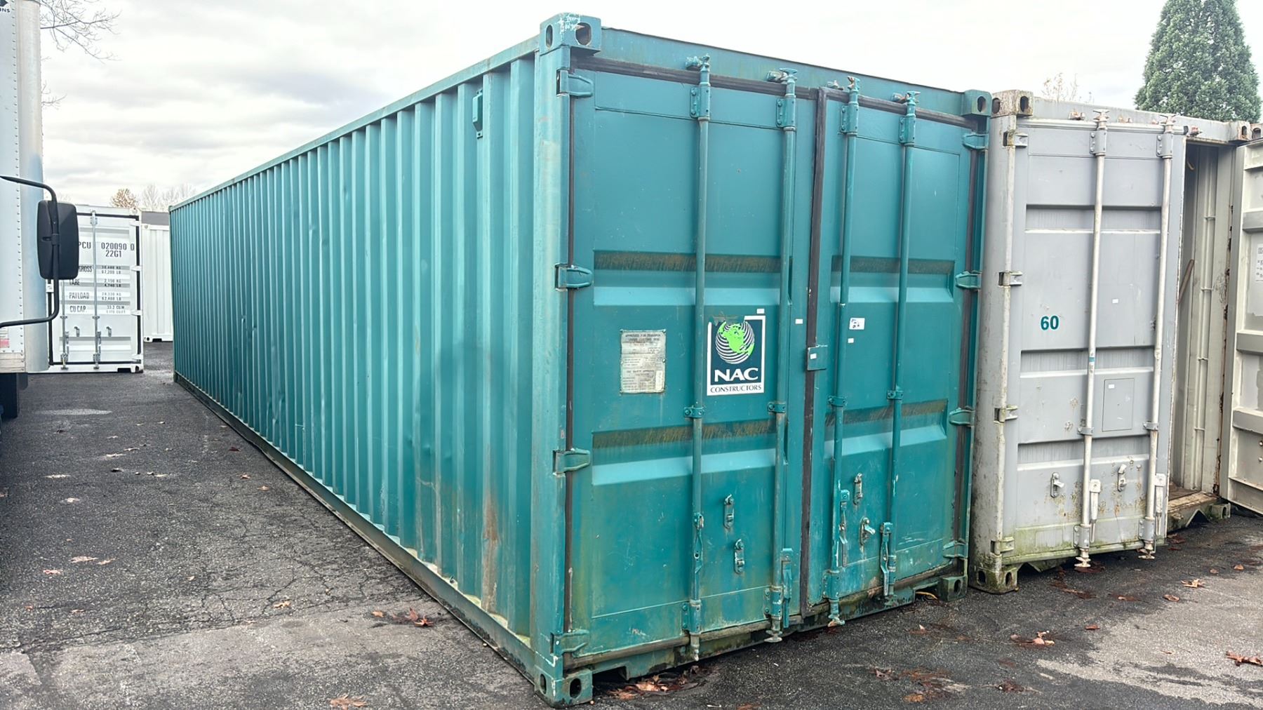GREEN 40FT 67,200 MAX CAPACITY INDUSTRIAL TRANSPORT CONTAINER, DUAL SWING REAR DOORS WITH CAM LOCKS 40'L X 96"W X 102"H - GB/C 4262 BV/1999 *REQUIRES HIAB CRANE OR TILT DECK TRAILER TO TRANSPORT, LAST DAY REMOVAL, SUNDAY ONLY*