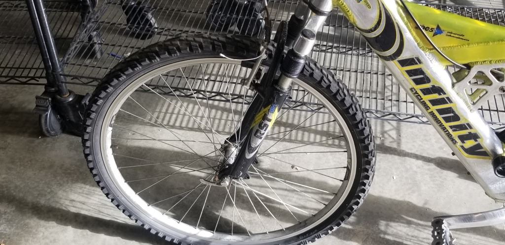 GREEN AND SILVER INFINITY BIKE